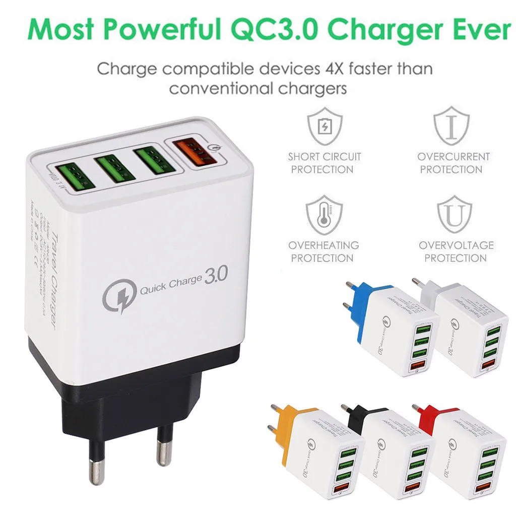 4 Порты и разъёмы Кабель для быстрой Зарядное устройство QC 3,0 usb-хаб, настенное зарядное устройство 6.1A, адаптер питания, штепсельная вилка европейского стандарта