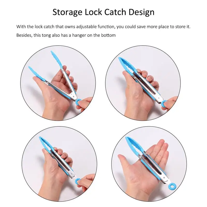 Food tong имеет дизайн блокировки для более удобного хранения. С замком, который имеет регулируемую функцию, вы можете сэкономить больше места для хранения. Кроме того, этот Тонг также имеет вешалку на дне.
