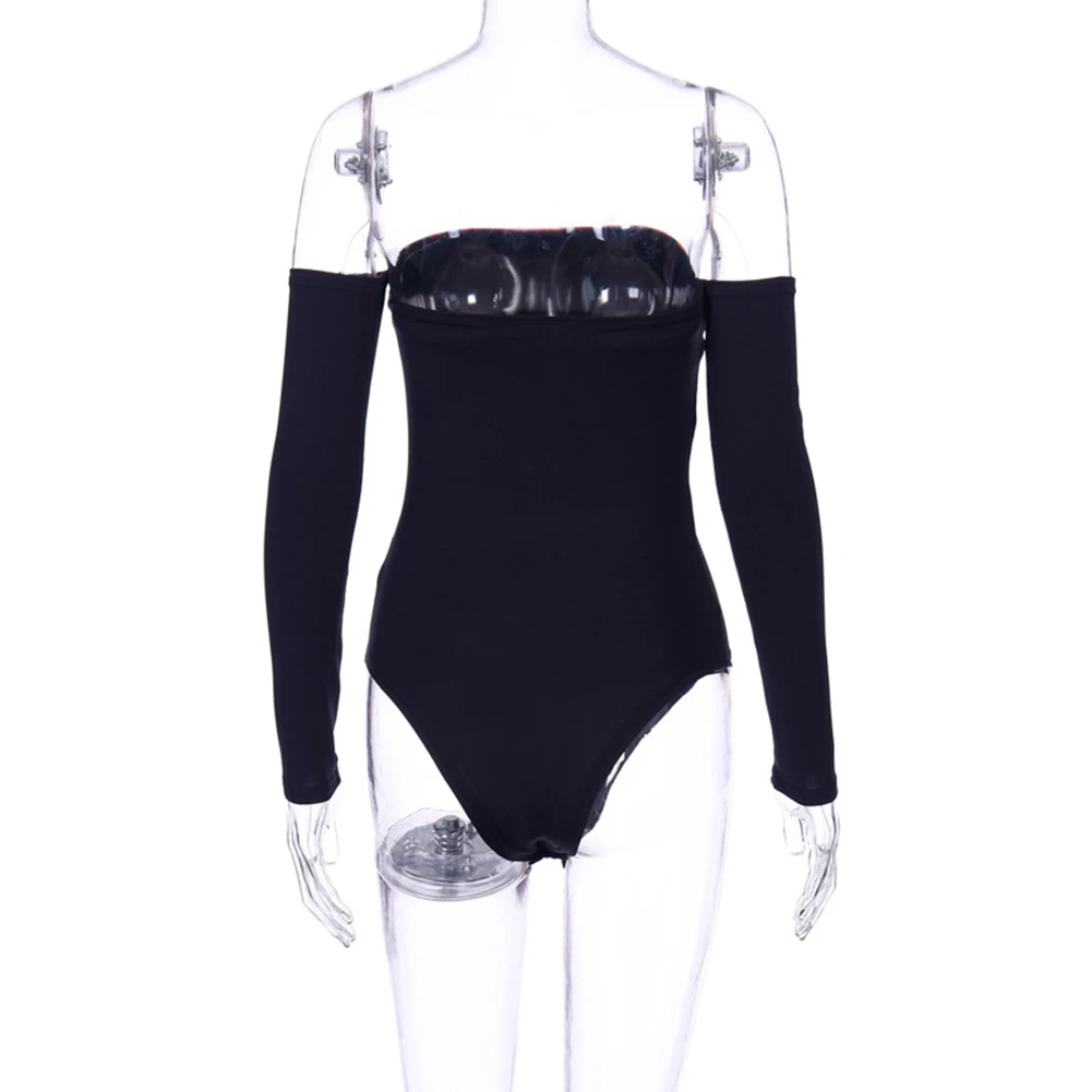 -С открытыми плечами, с длинными рукавами, облегающий крой, комбинезоны с рюшами и разрезом спереди