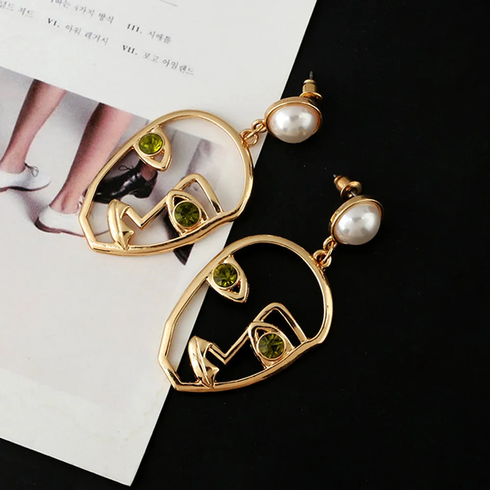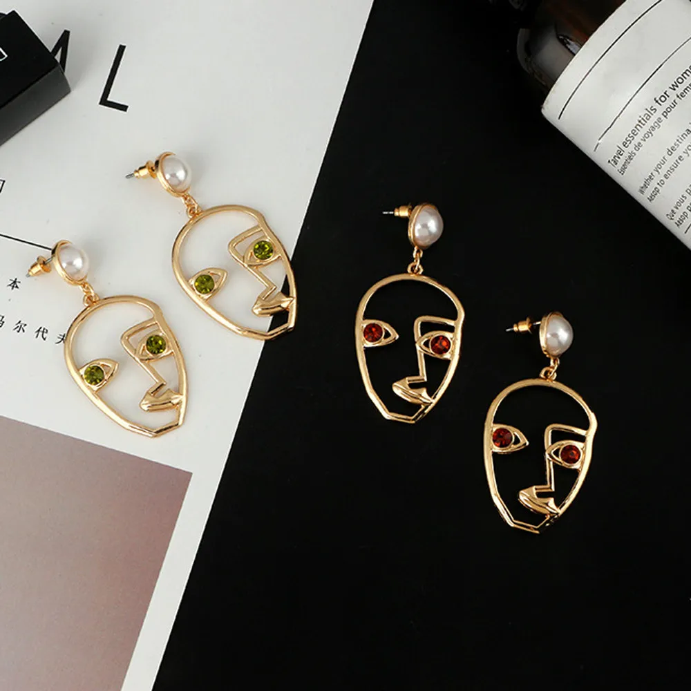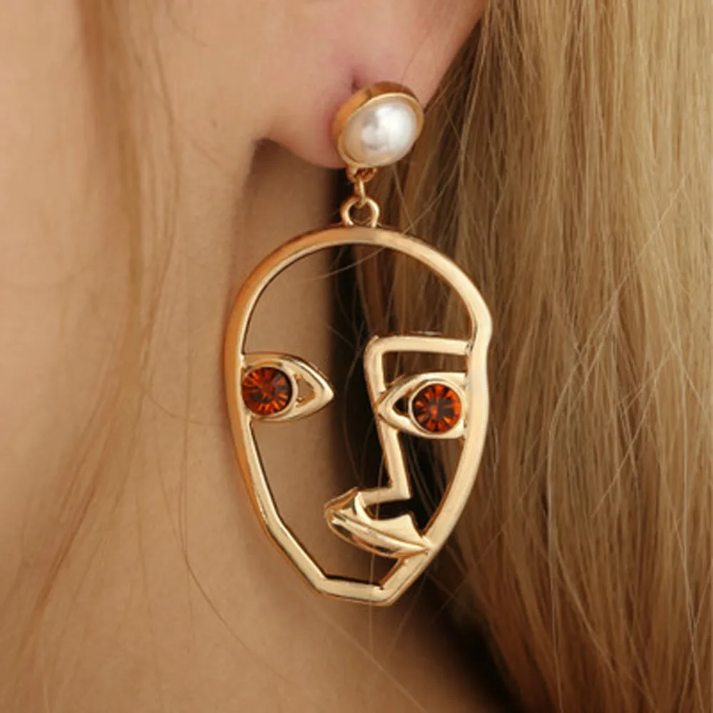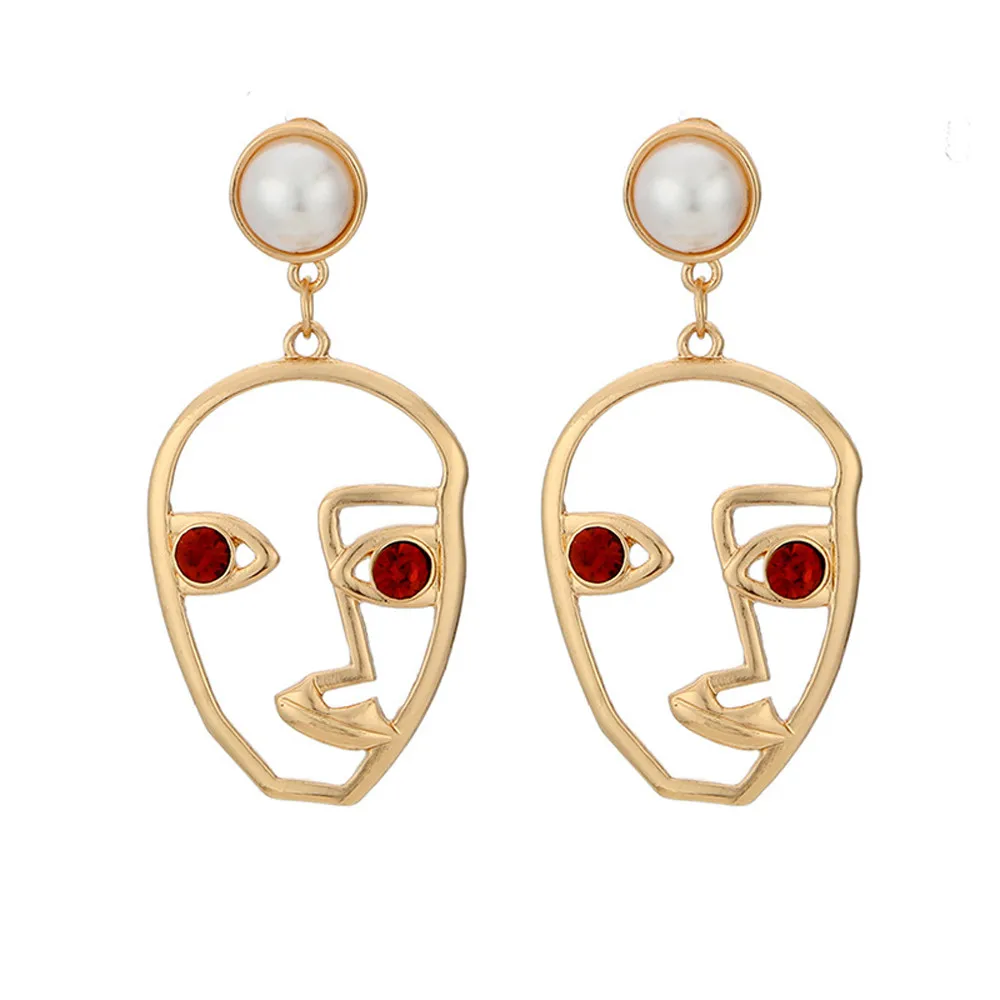 Странное лицо, Кристальные стразы, висячие серьги, женские серьги в виде лица, металлический сплав, винтажный вид лица, полые Ювелирные изделия, забавные подарки, красный цвет