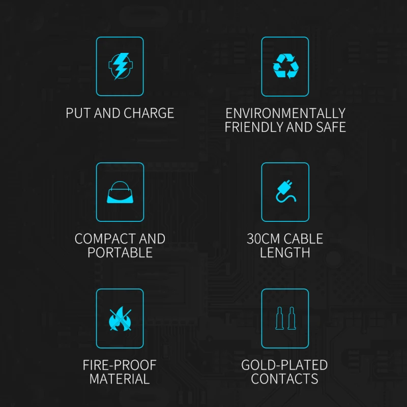 Для зарядного кабеля Xiaomi bracelet 4, дизайн зажима, то есть положить и заряжать, не нужно демонтировать браслет, чтобы избежать потери хоста браслета из-за ослабления. Компактный корпус, легкий и простой в зарядке, более удобный для зарядки. Гибкий провод оснащен длиной 30 см, которая на 18 см длиннее оригинальной лески. Он решает проблему короткой неудобной линии и не боится изгиба, что дает вам более портативный и комфортный опыт зарядки.