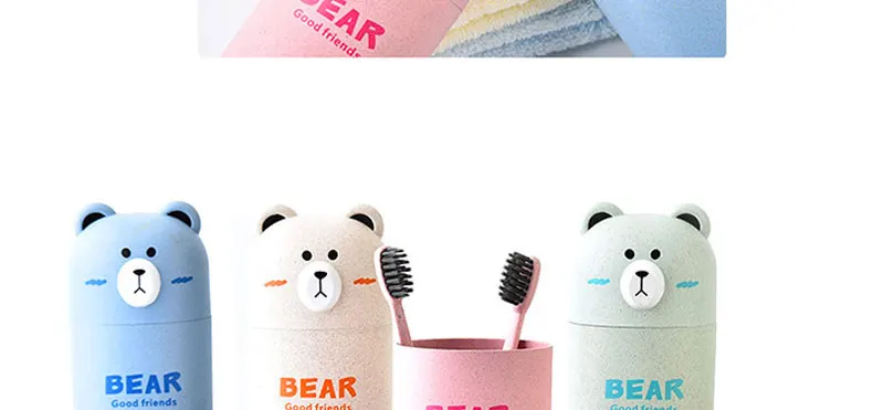 Портативные чашки для зубных щеток с милыми медведями, дорожные ящики для хранения зубных щеток, чехол для бутылки с ручкой для мытья зубов, организация домашней ванной комнаты