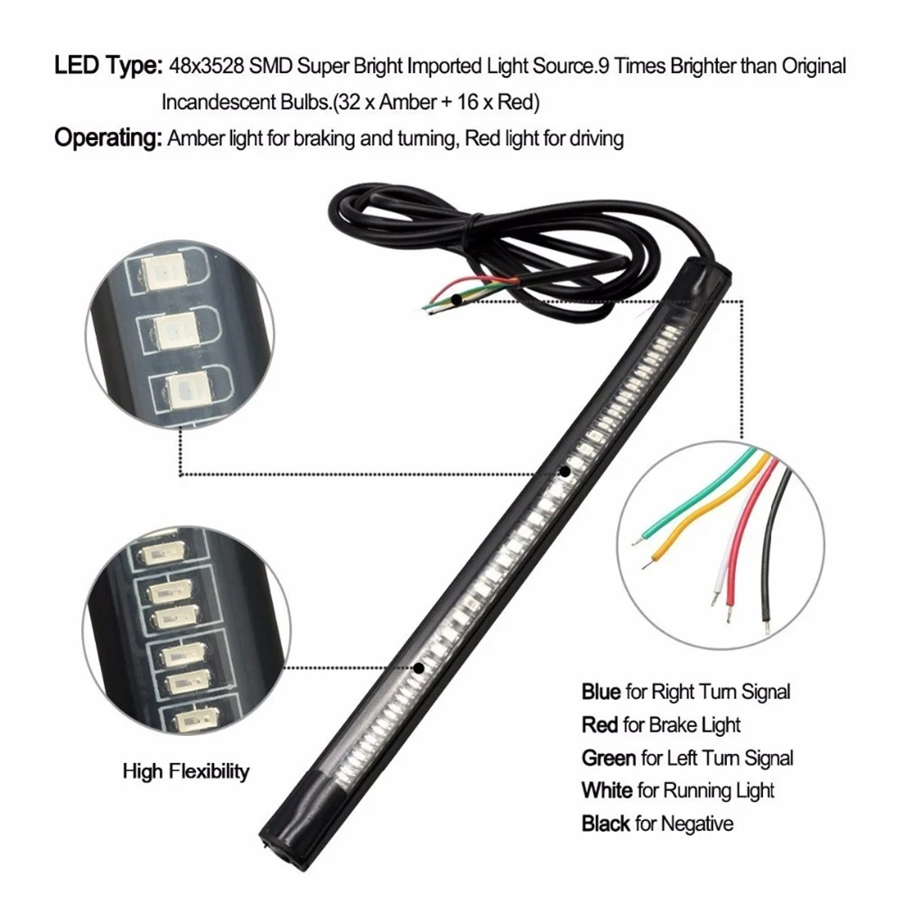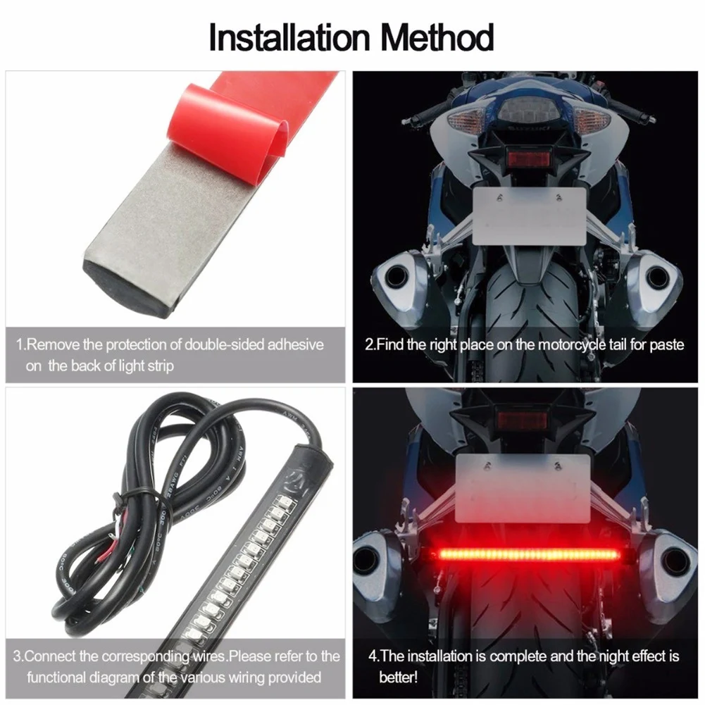 Universal Motorcycle LED Rear Tail Brake Stop Turn Signal Strip Light Lamp Bar
