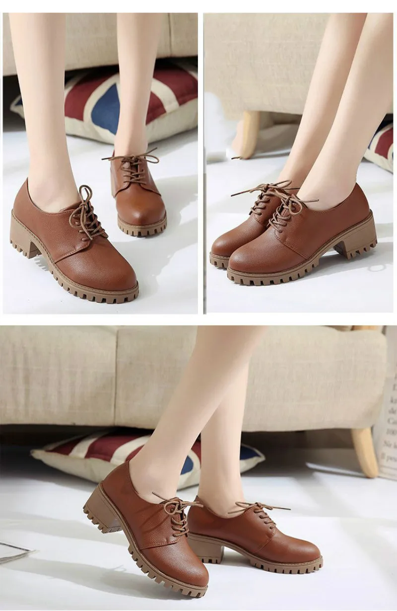 Модные Ботинки martin; Женская кожаная повседневная обувь на шнуровке; Ботильоны на платформе; Цвет Черный; zapatos mujer; Сезон осень-зима; 2019