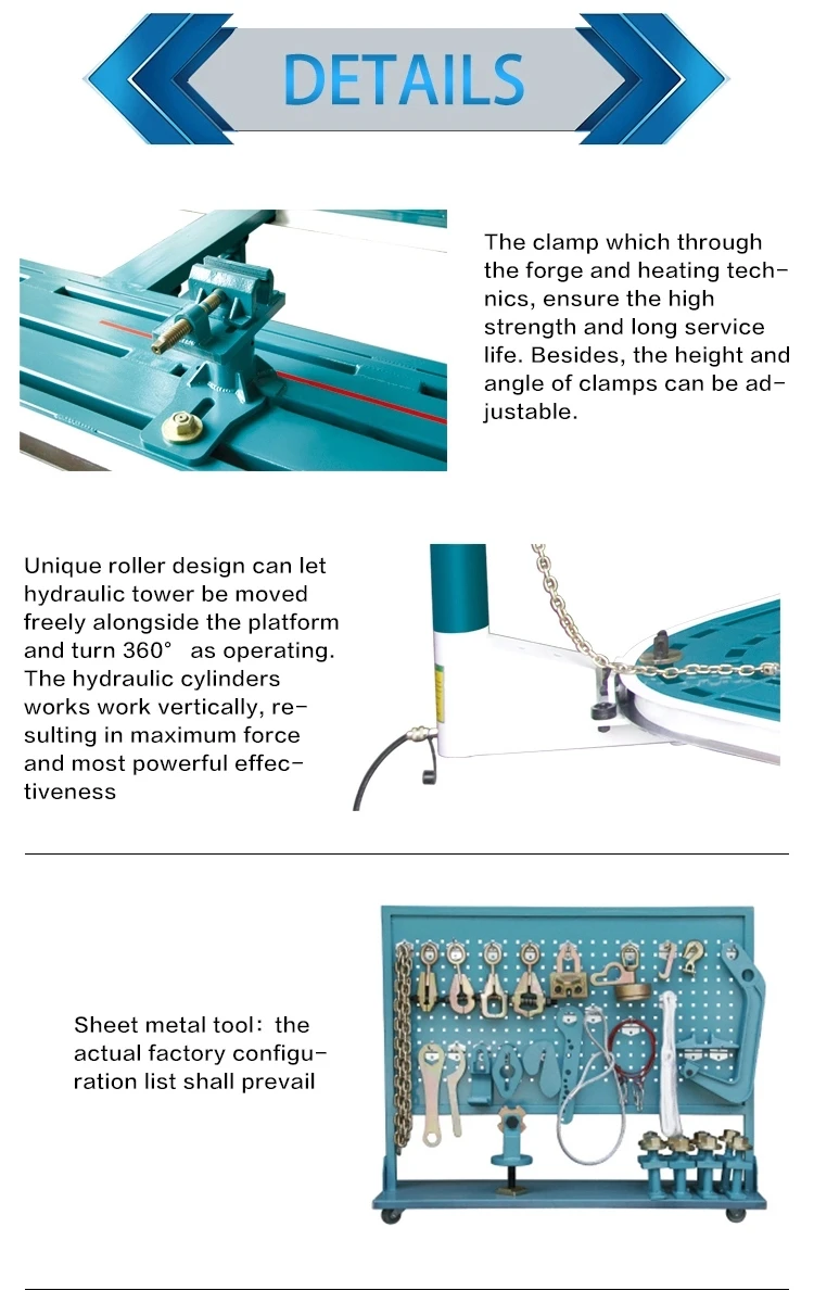 Место происхождения: Шаньдун, Китай Фирменное наименование: OBC Партномер: OBC-B2 Вес: 2000 кг Высота стенда: 520 мм Максимальная грузоподъемность: 3500 кг Длина рабочего стола: 5200/5600 мм Ширина рабочего стола: 2200 мм Гарантия: 1 год Название продукта: машина для автоматической рамы Цвет: синий/красный/на заказ Диапазон использования: 4S станция/гараж магазин/согласно История компании: 16 лет Гарантия: 1 год Сертификация: CE ISO Материал: квадратная труба из стали В основном рынок: по всему миру Инструменты тележки: в комплекте Долговечность: идеальная система ремонта автомобиля Collison