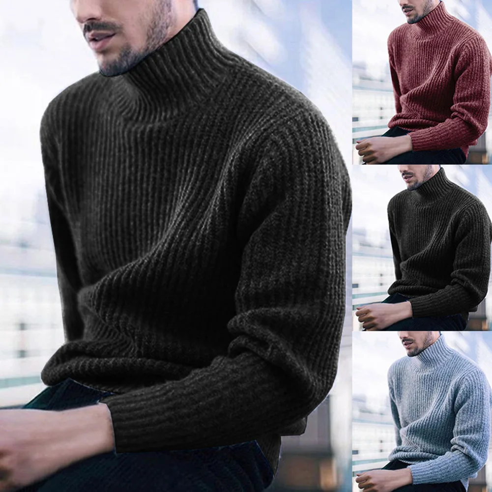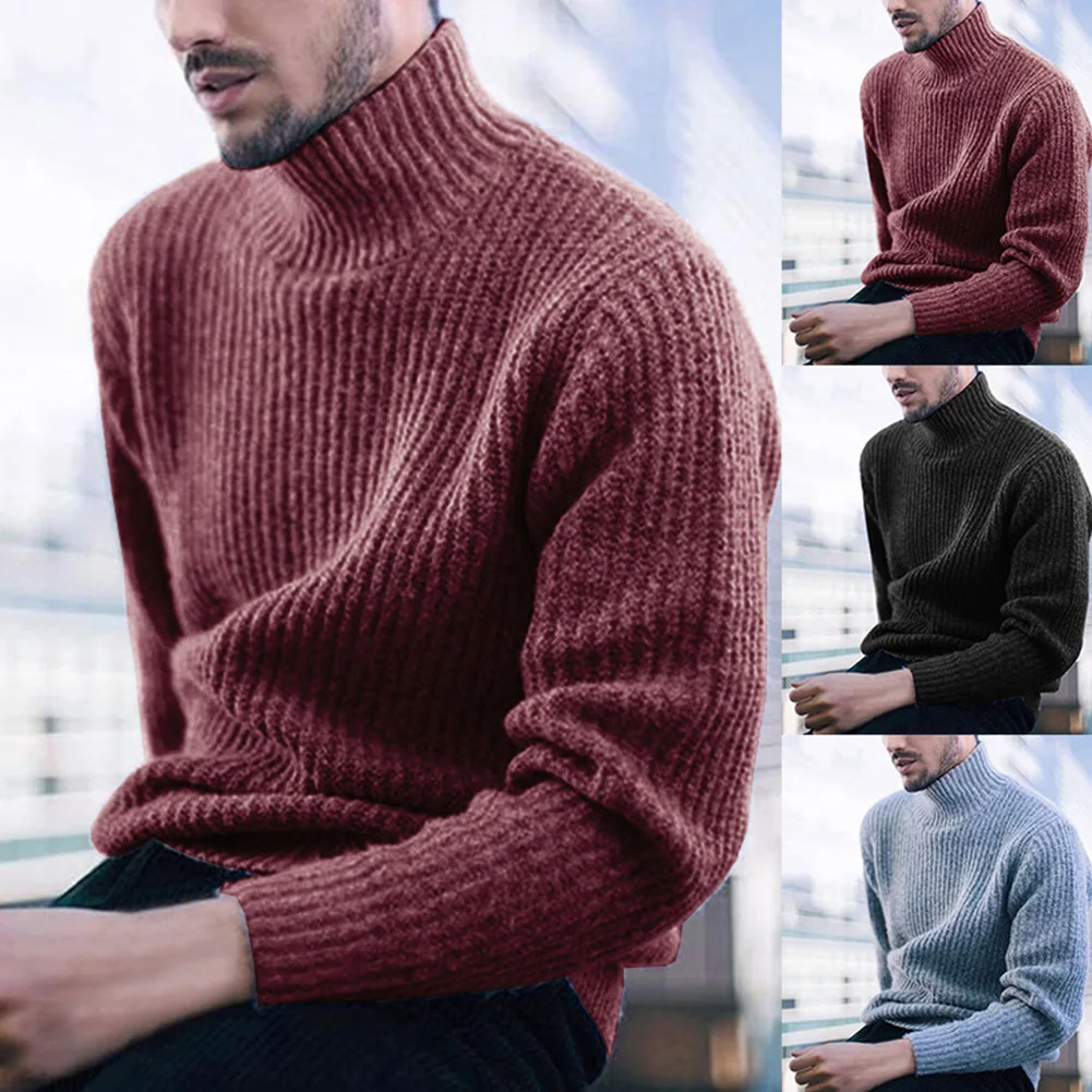 Модный мужской свитер, однотонная Водолазка с длинным рукавом, Повседневный пуловер, вязаный свитер для мужчин, зимняя одежда