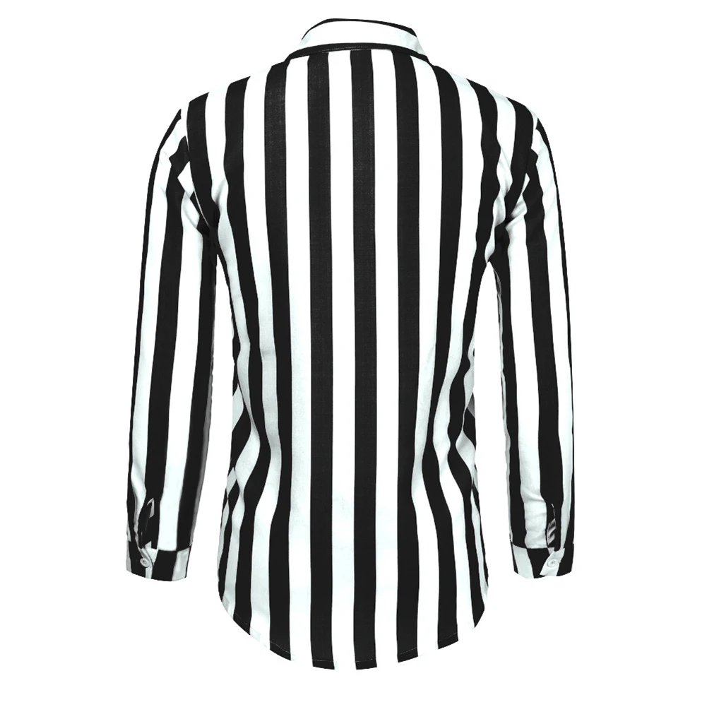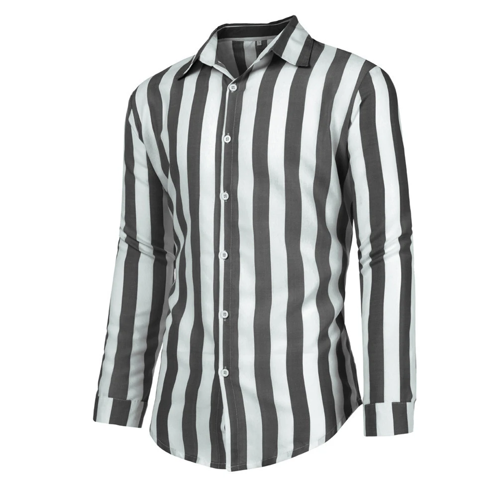 Модный отложной воротник вертикальные полосы свободная кнопка с длинным рукавом мужская рубашка Топ