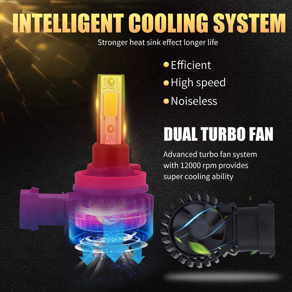 Мощность светодиода: 72 Вт/комплект (36 Вт/лампа) Светильник источник: на основе технологии COB Напряжение: 12-24 В постоянного тока Световой поток: 8000лм/комплект (4000лм/лампа) Цвет Tempreatuer:3000K 6000K 8000K Светильник Цвет: цвет: желтый, белый синий светильник, как показано на рисунке Водозащита-Скорость передачи данных: IP65 Система охлаждения: с 12000 об/мин вентилятор интеллектуальная система охлаждения Рабочая температура:-40 °C ~ + 80 °C Срок службы: ≧ 30000 часов Подходящие модели для автомобиля: Этот светодиодный светильник не допускает ошибок, а не полностью canbus для специального автомобиля.