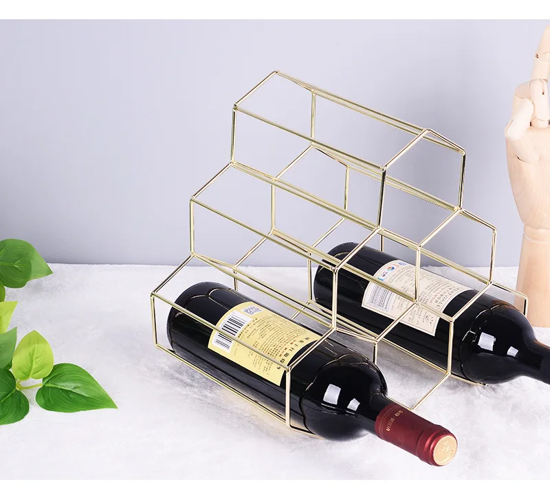 Шестиугольная структура стабильна, несущая высота большая и не легко сбрасывать, и она умно сочетается с цилиндрической винной бутылкой. Винную бутылку можно вынуть до и после винной стойки!