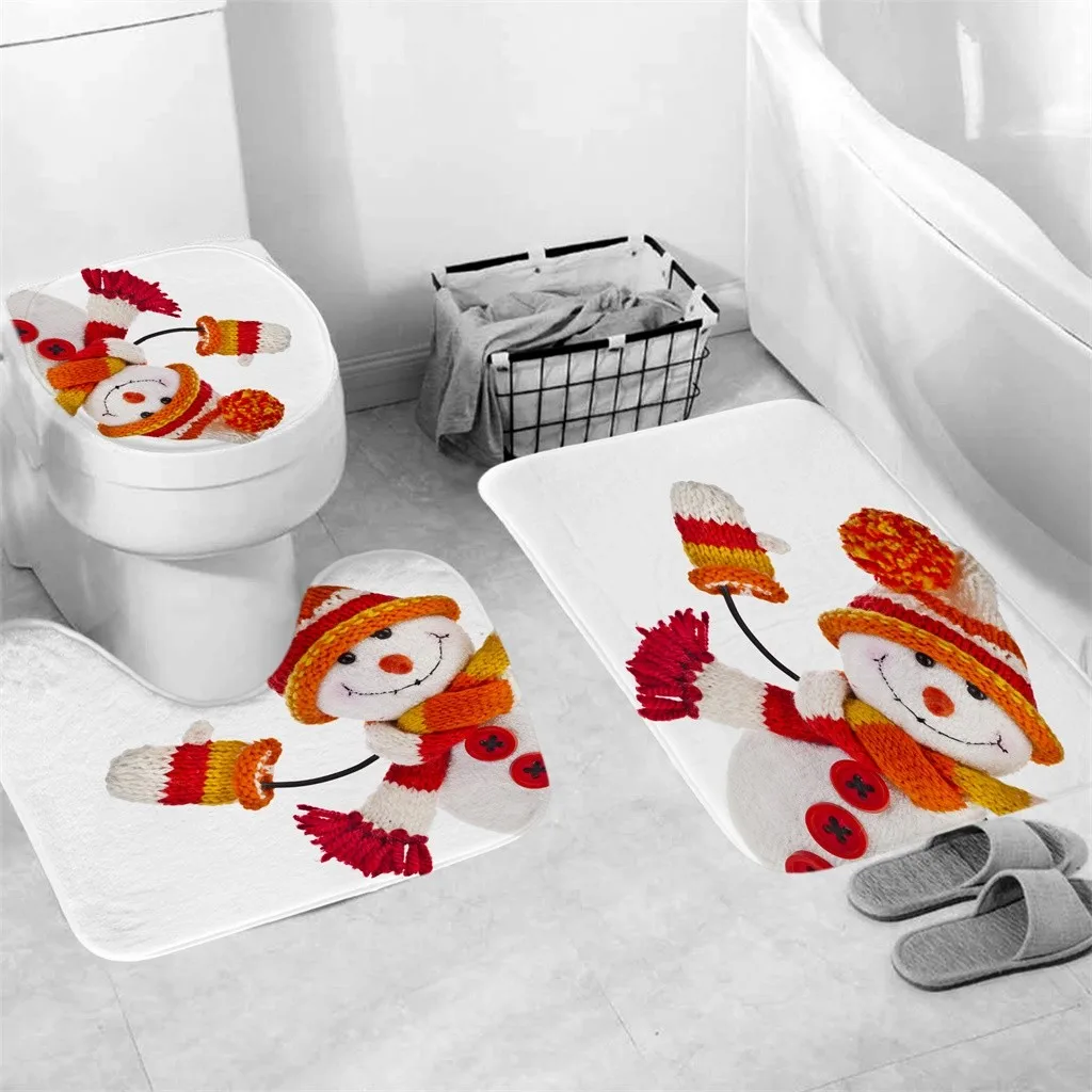 3 шт. рождественские занавески для душа ванной противоскользящие Ковровые Коврики для туалета Набор ковриков