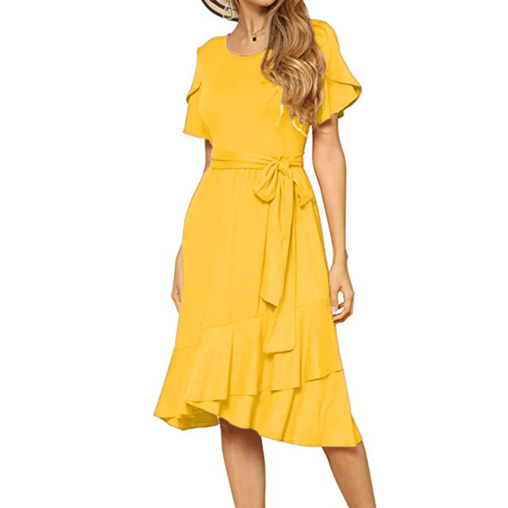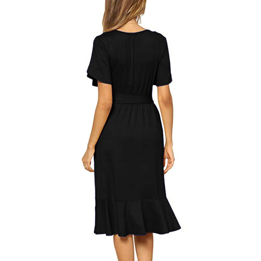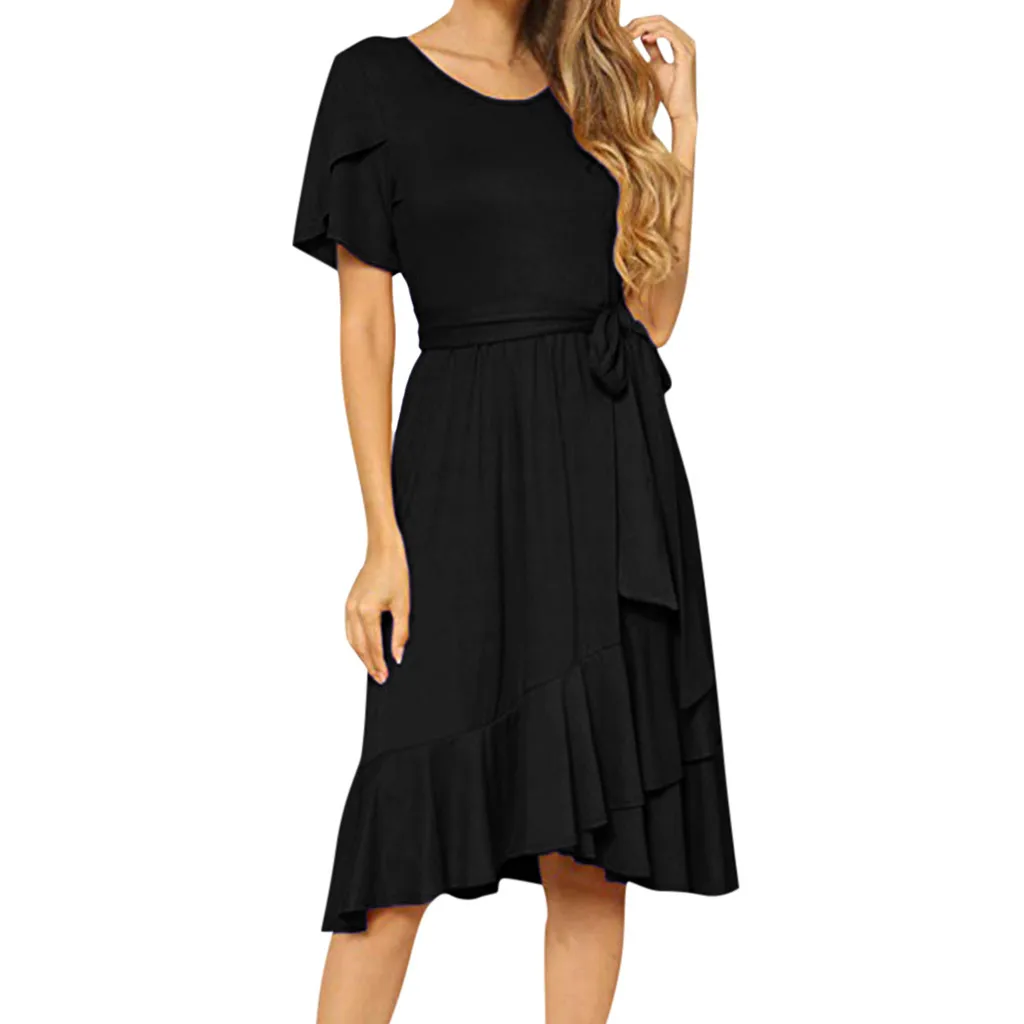 Женское летнее сексуальное Простое Повседневное платье миди с коротким рукавом и поясом