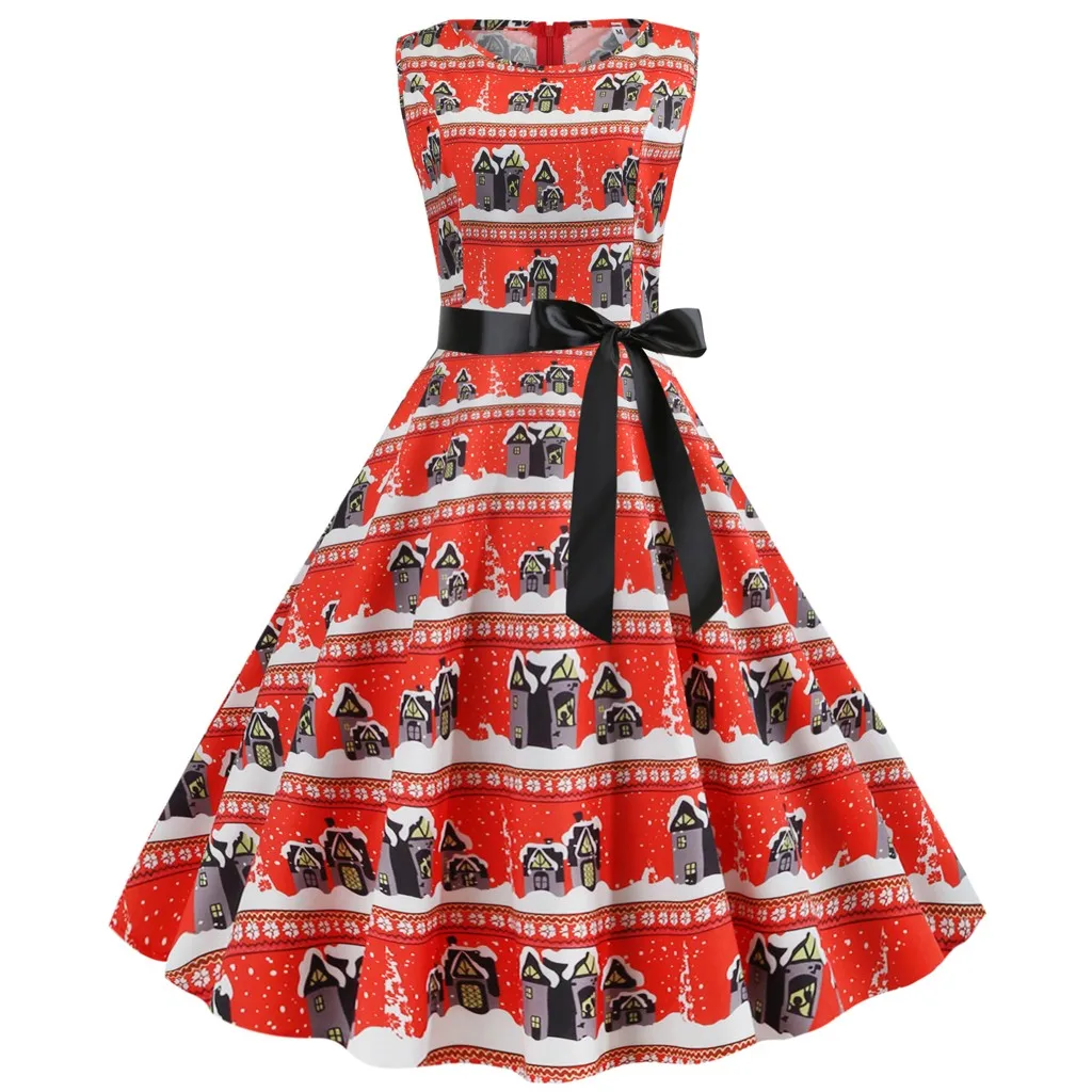 Круглый вырез с узкой оборкой, длинный рукав, корсет Винтажная строчка с рождественским принтом плюс Европейский королевский стиль дает вам ретро и элегантный вид; fit & расклешенный силуэт подчеркивает Вашу фигуру Винтажный стиль Хепберн 1950 s идеально подходит для праздничной одеждыЭто просто потрясающе! Мы влюблены в это рождественское платье. Подходит для мирного разрешения проблемы