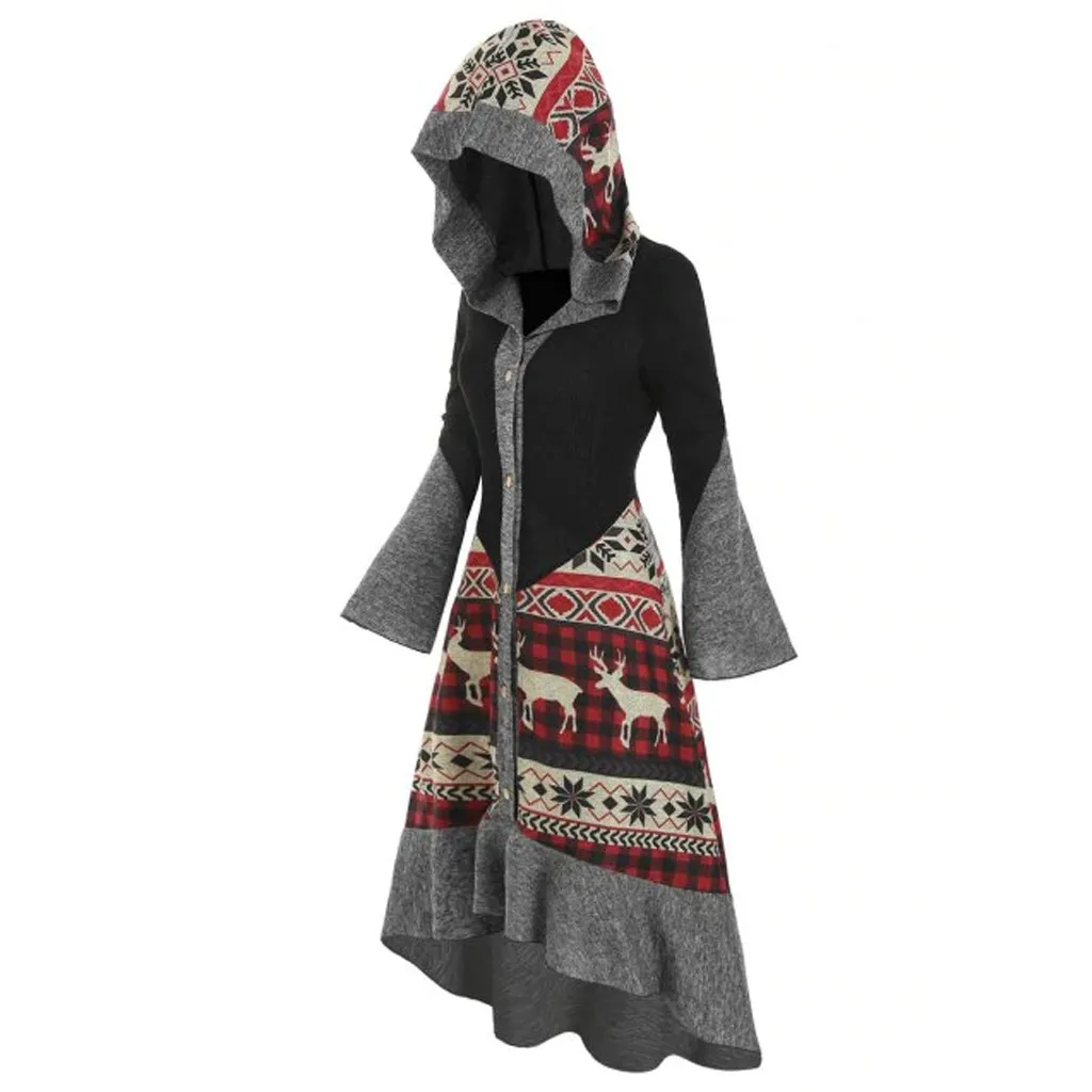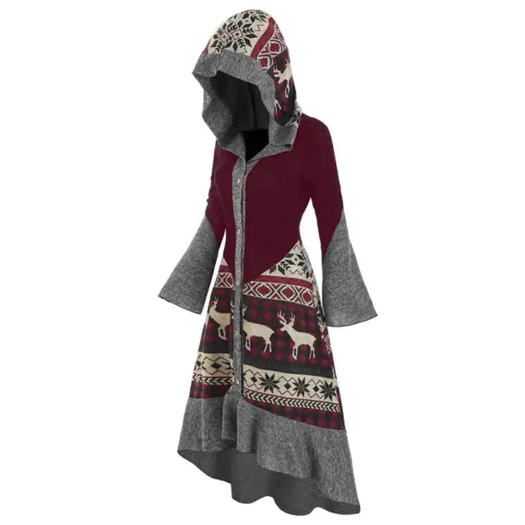 Женское трикотажное платье размера плюс с капюшоном и рождественским оленем