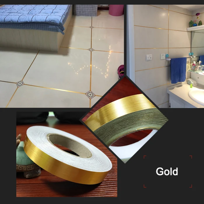 Керамическая плитка Mildewproof зазор лента плитка зазор уплотнительная лента Водонепроницаемая фольга полоса Серебряные Золотые диски PAK55
