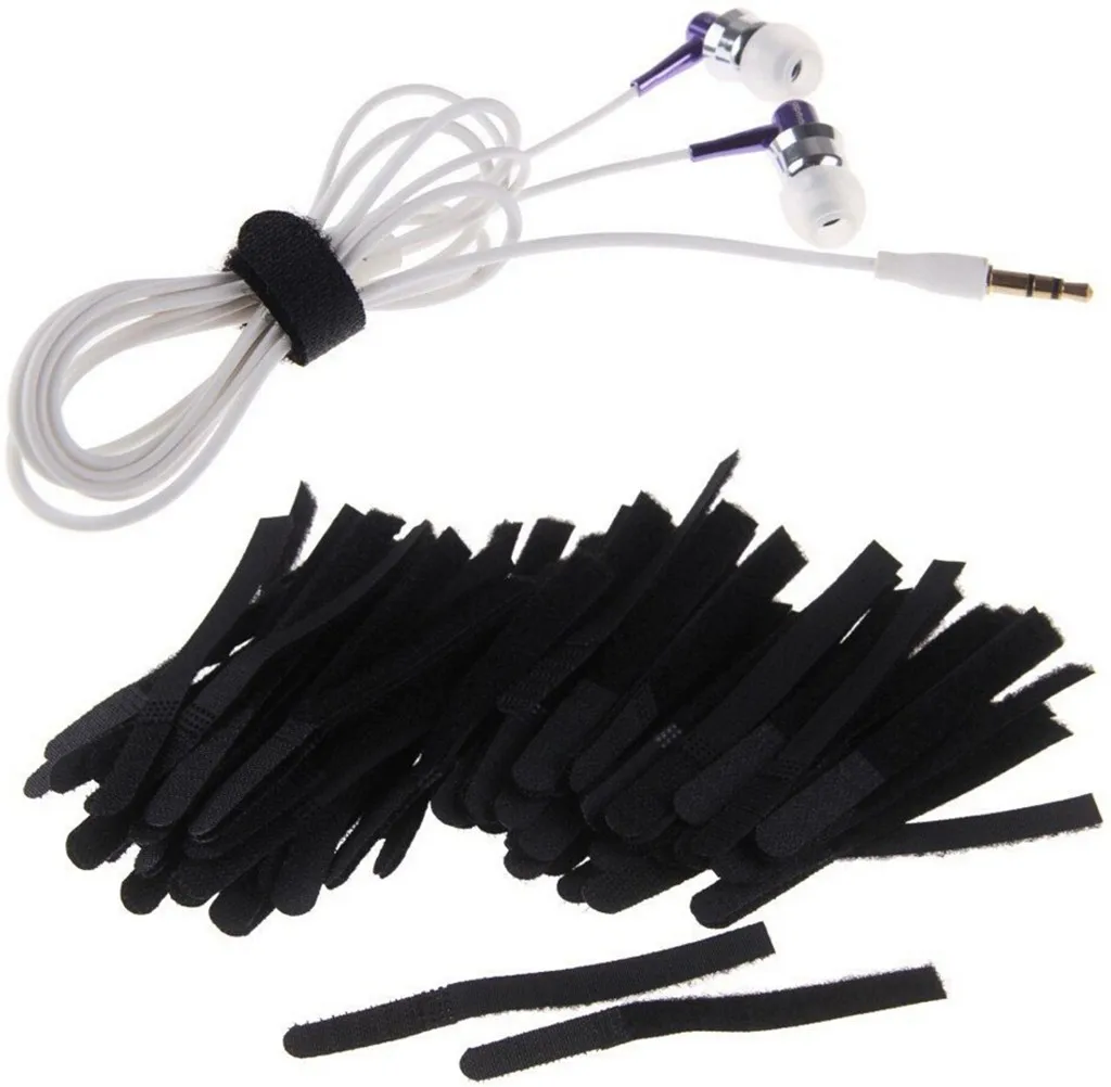 100 шт. 1x13 см многоразовый кабель нейлоновый ремешок черный кабель шнур крюк и петля Галстуки аккуратный органайзер для намотки кабеля