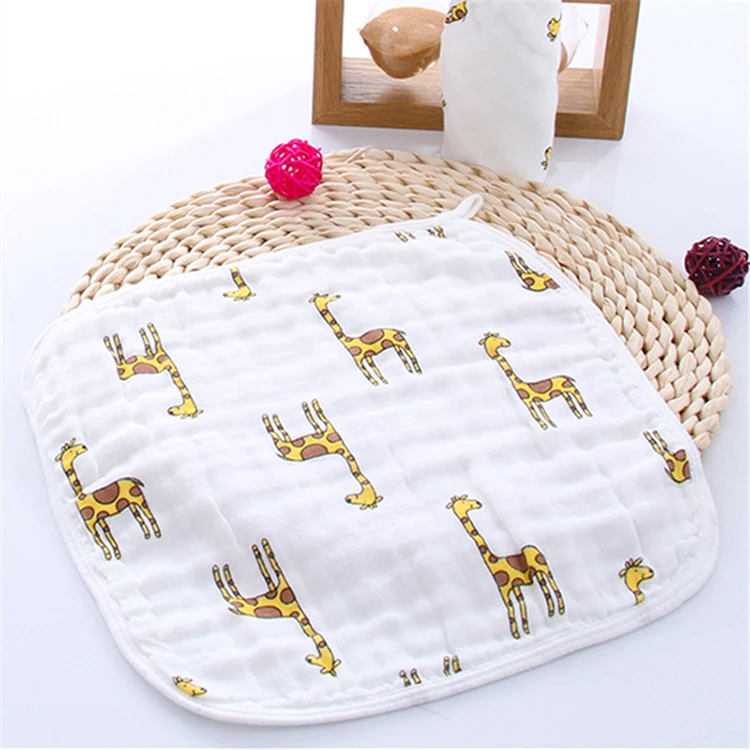 Размер: 30 см * 30 см шесть слоев Марли Ткань: 100% хлопок Возраст: от 0 до 3 лет Пол: унисекс Упаковка: 1 шт. или 3 шт./лот Особенности 1. 100% новый бренд, высокое качество 2. С милым рисунком 3. Очень приятная на ощупь, мягкий и пропускающий воздух материал, подходит для Детское нежное кожи 4. Подходит для повседневной носки ребенка 5. Защелкивающаяся конструкция, легко надевается и снимается 6. Избегайте влажной одежды со стороны слюны ребенка