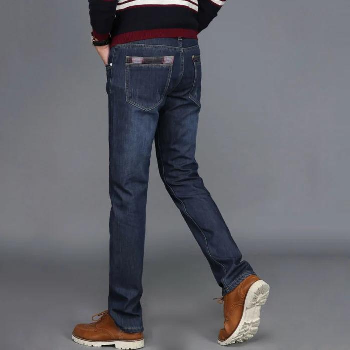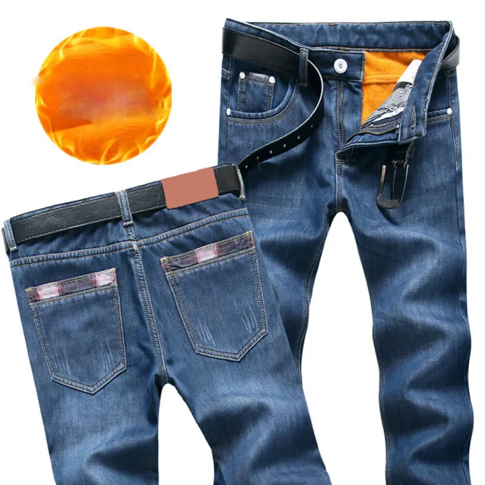 Лидер продаж; Мужские зимние Утепленные джинсы с флисовой подкладкой; Джинсовые длинные брюки; Повседневные теплые брюки для офиса и путешествий; IE998