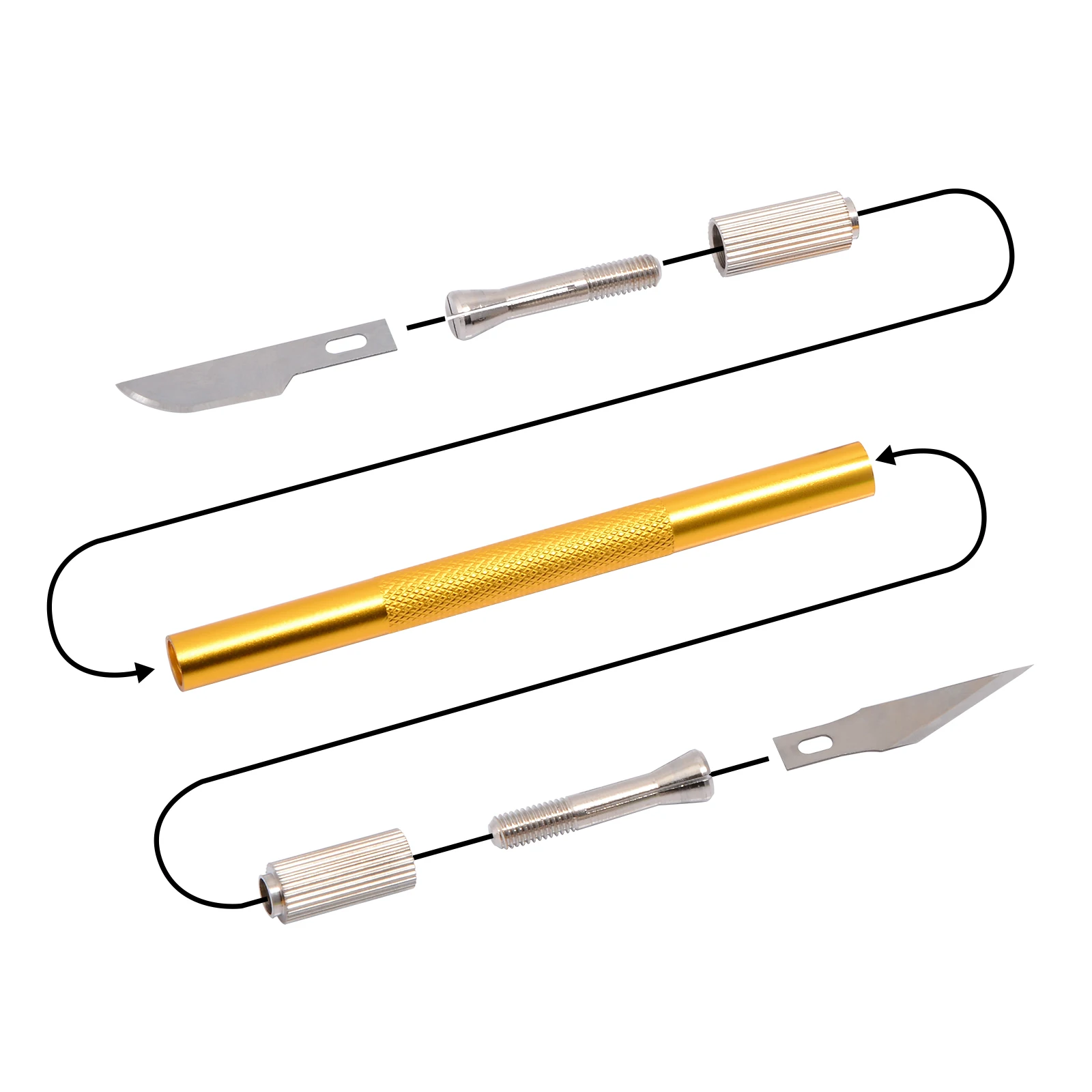 Посылка включает в себя: 1*2 боковыми нож бытовой + 10 * Запасных Лопастей Параметры 1. Цвет: золотой, серебряный 2. Материал: нержавеющая сталь 3. Размеры: 19 см/7,5 дюймов Особенности 1. 2 формы лезвий для нескольких функций. 2. Достаточно длинная ручка для экономии труда. 3. Легко менять запасные лезвия, плотные лезвия для эффективной работы. 4. С запасными лезвиями для замены, более длительный срок службы. Применение 1. Пленка из углеродного волокна/виниловая пленка для автомобиля/наклейки/оберточная бумага/резак наклеек. 2. Инструмент для стайлинга автомобиля, ручной инструмент для рукоделия. .........