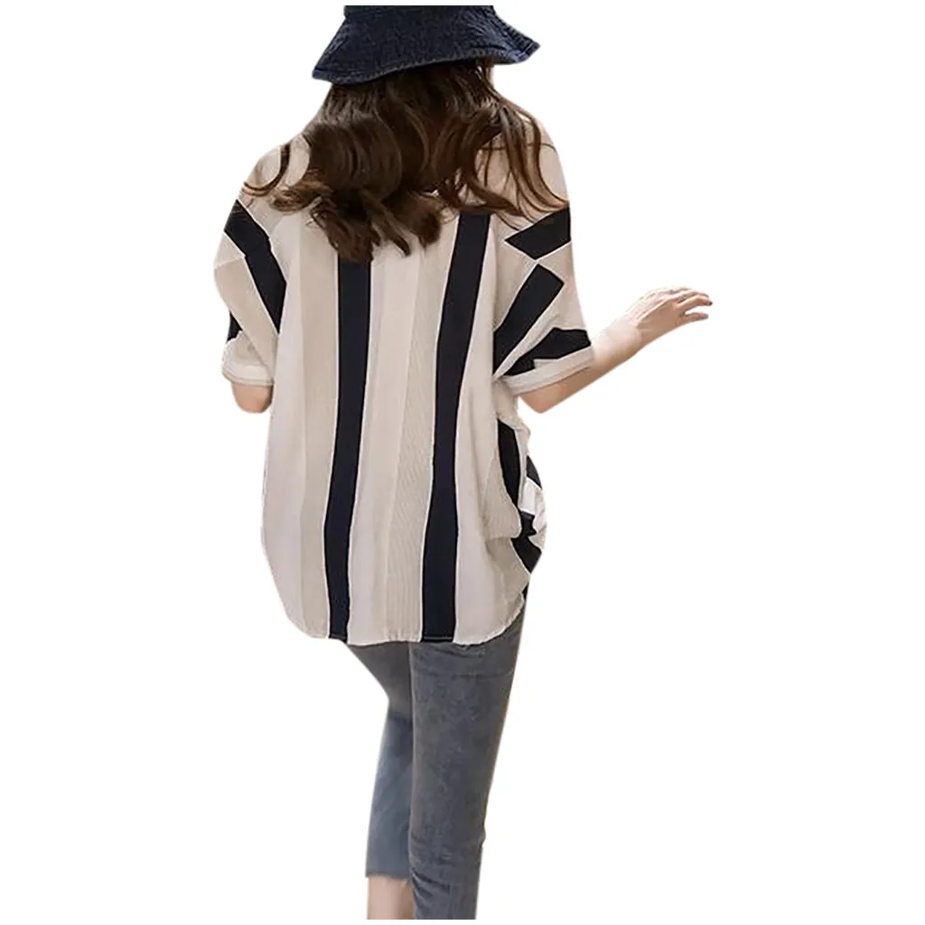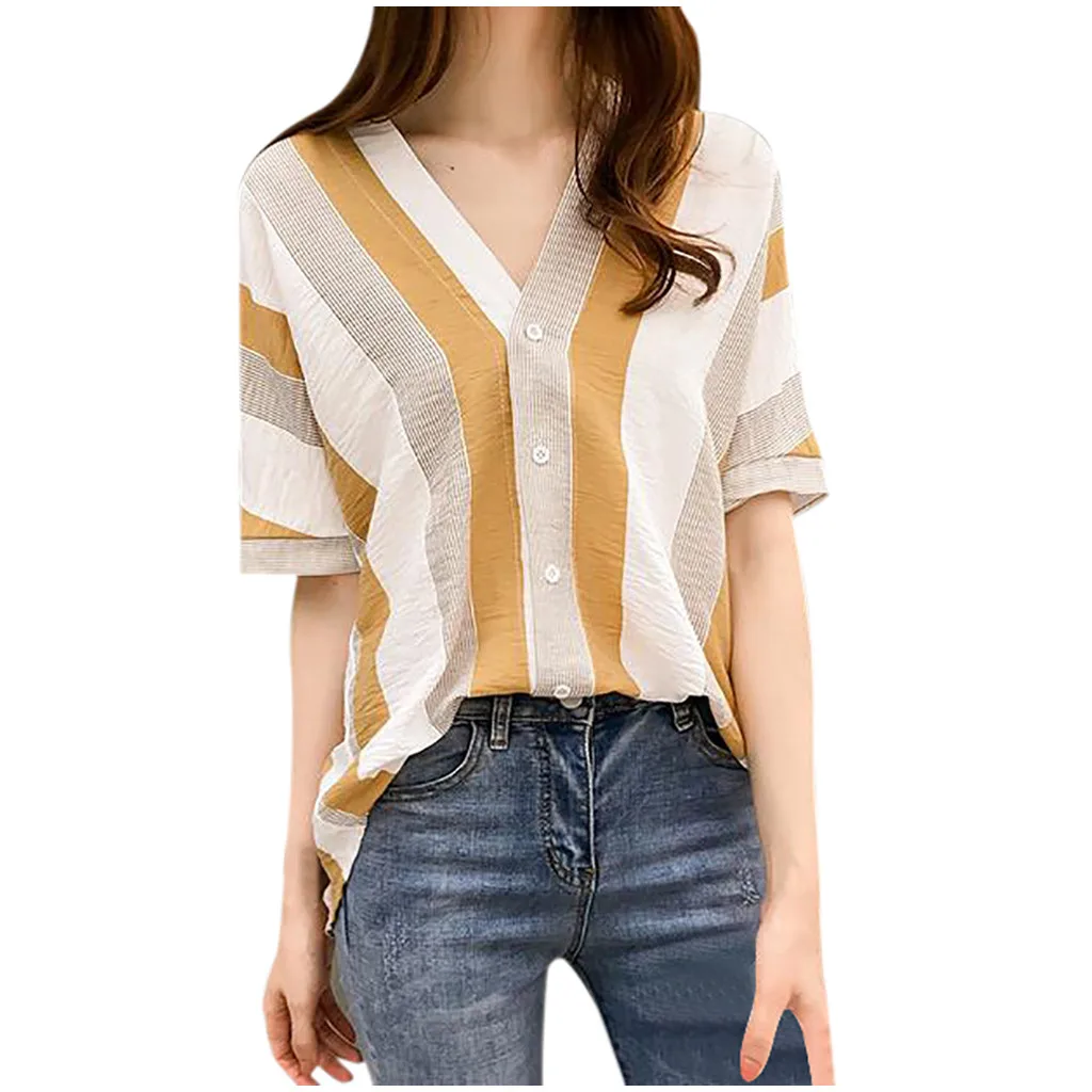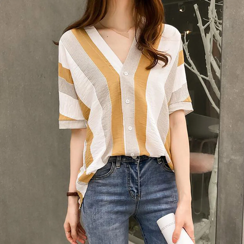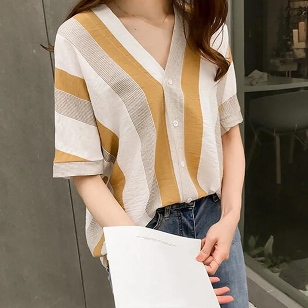 Особенности: винтажный, v-образный вырез, короткий рукав,Повседневное топы, сочетающиеся с любой одеждой. Полосатые рубашки,.