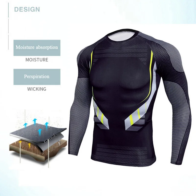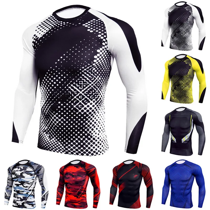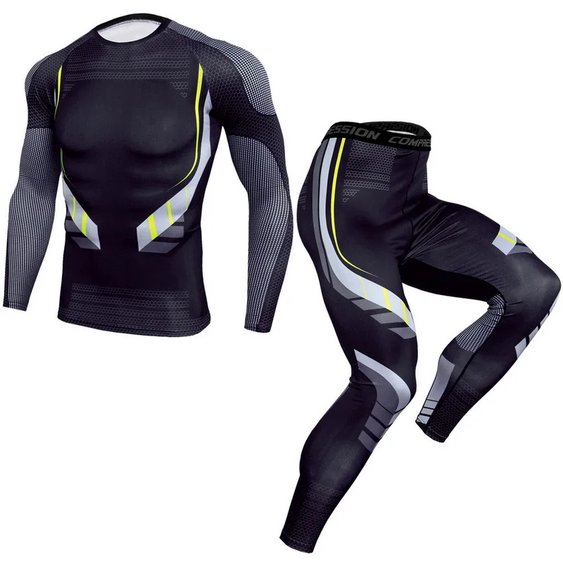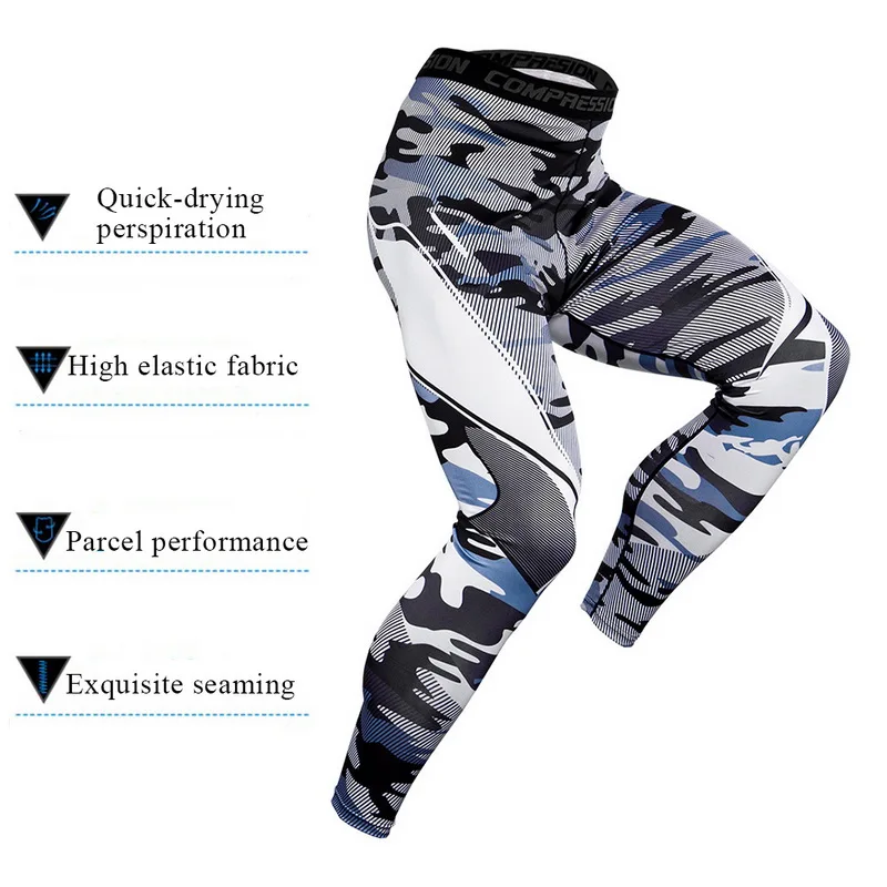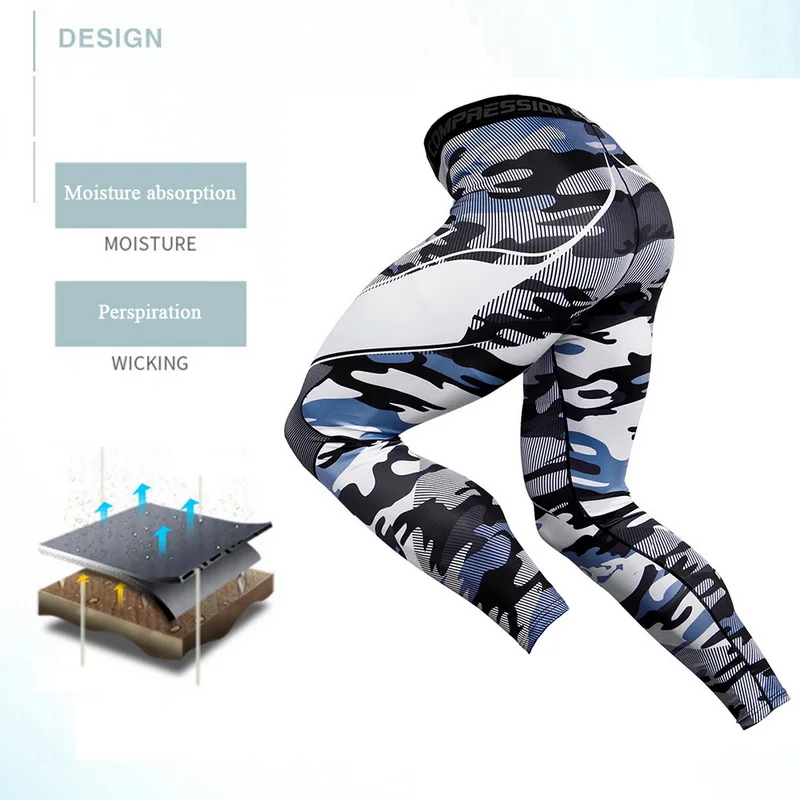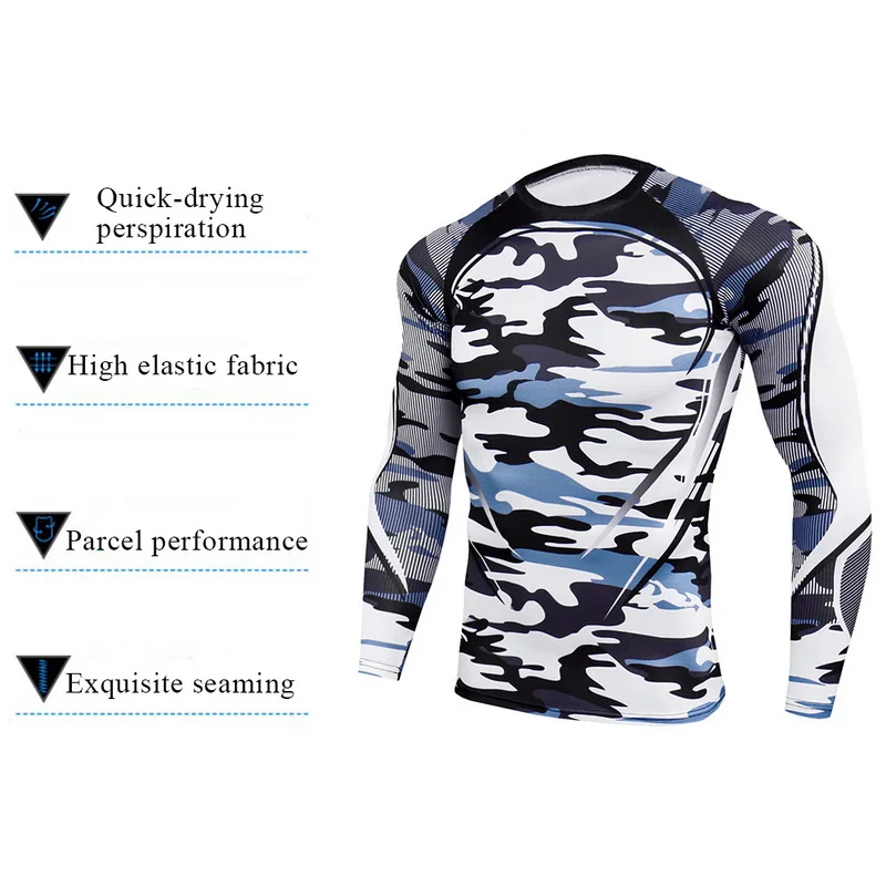 Камуфляжная спортивная одежда, мужской спортивный костюм из 2 частей, комплект для бега, компрессионная одежда, рубашка и леггинсы, спортивный костюм для спортзала, 2019