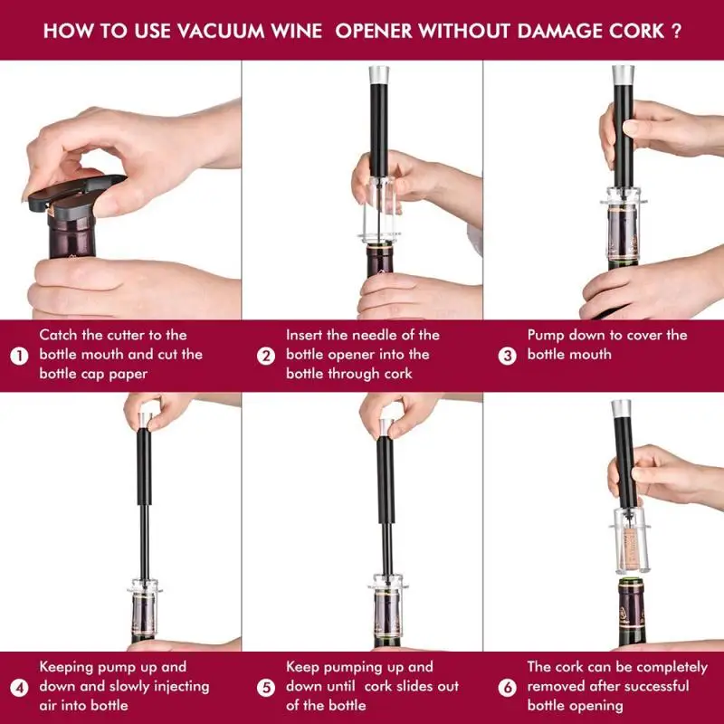 Изготовлен из высококачественного абс/алюминиевого материала, тефлоновая игла поверхность винного открывателя обработана пищевой и устойчивой к коррозии. Пищевой силикон для вина
