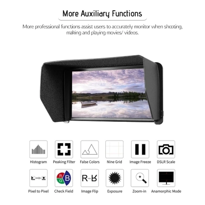 Abundent соединения: F570 оснащен 4 к HDMI входом и выходным интерфейсом, так что вы можете подключить монитор к различным 4 к камере и многое другое, вы также можете синхронизировать-выход 4 к HDMI видео сигнала, удобно для менеджеров и фотографов мониторинг одновременно. Вы также можете отслеживать звук с помощью 3,5 мм стереонаушника.