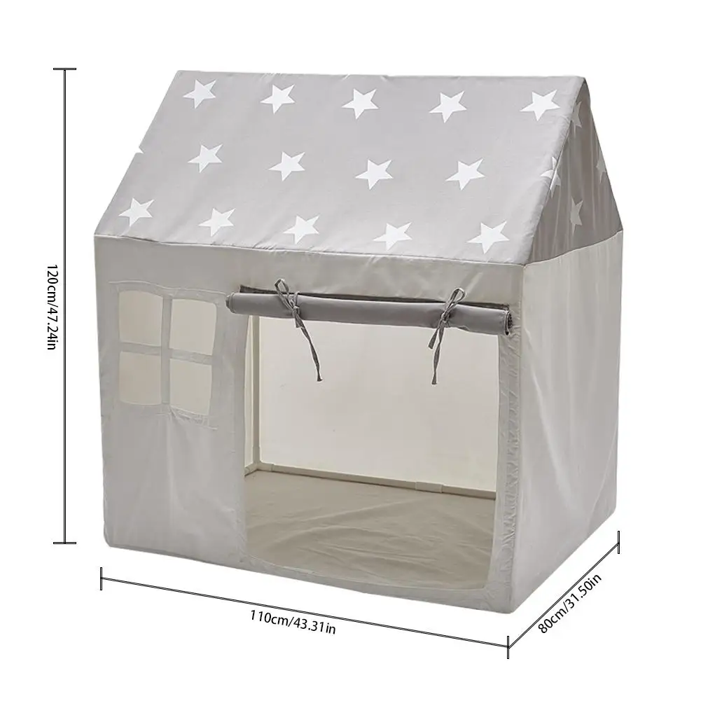 Information: Product Name: Children's Play Tent Fabric type: Cotton canvas Installation method: PVC stand assembly (includes accessories) Packing size: about 75*13*23CM/29.53*5.12*9.06in Product size(approx.): length 110cm/43.31in; width 80cm/31.50in; height 120cm/47.24in Package weight: about 3.5KG