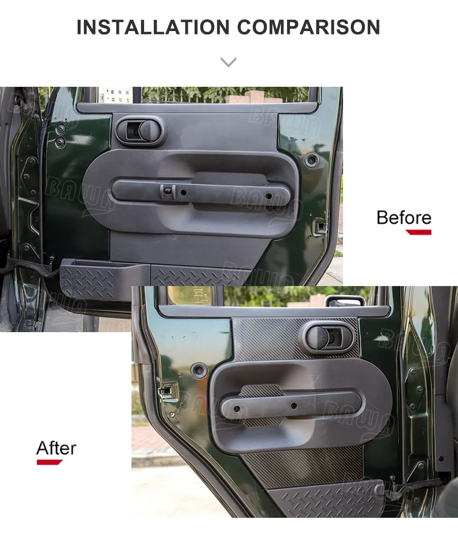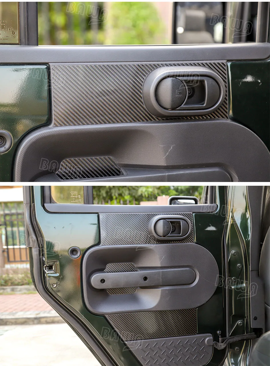 BAWA Carbo волокно Авто Передняя Задняя дверь декоративная крышка наклейки для Jeep Wrangle JK 2007-2010 интерьерные молдинги аксессуары