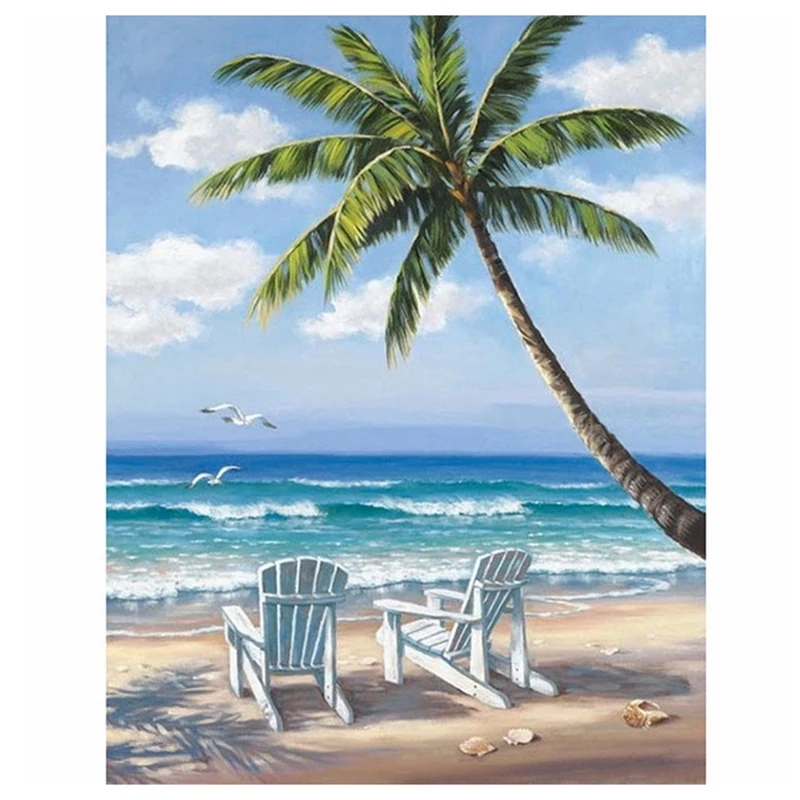 2 набора алмазной картины: "Приморский шезлонг" и "желтый цветок"