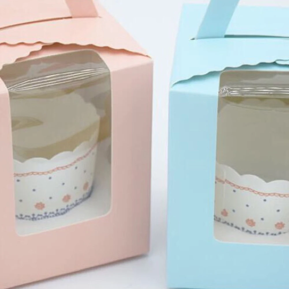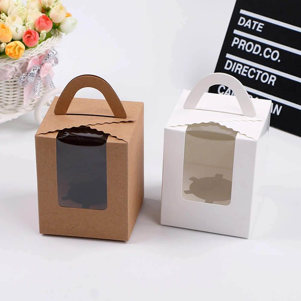 10 шт прозрачные оконные коробки для одного капкейка кексы контейнеры для выпечки с ручкой