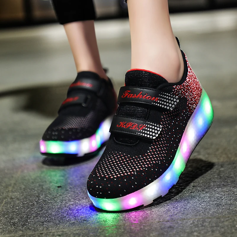 Детские кроссовки; Обувь с 2 колесами для мальчиков и девочек; Цвет розовый, черный; Детская обувь; Светящиеся кроссовки для детей; Обувь