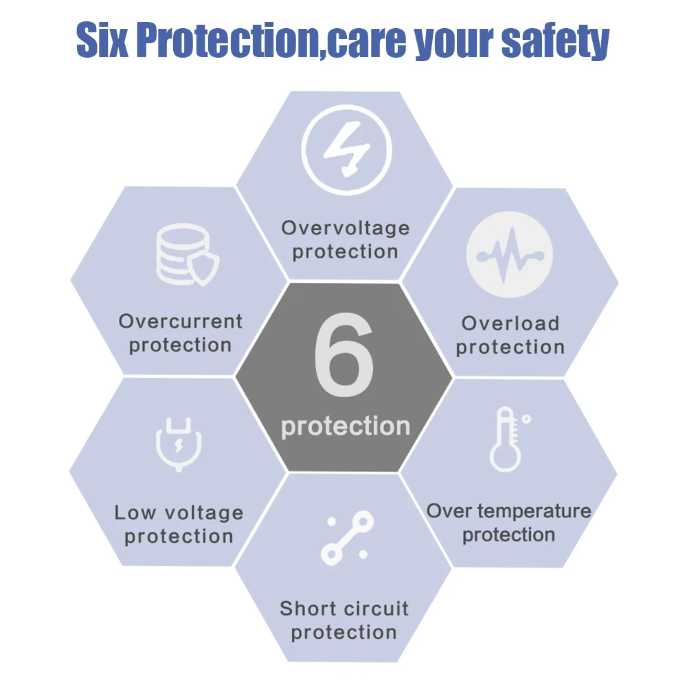 Безопасная конструкция зарядки, обеспечивает защиту от перегрева, низкого напряжения и перегрузки зарядки, короткого замыкания, держать вас в безопасности.