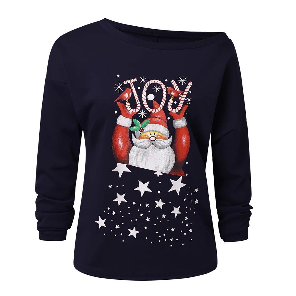 Женское Асимметричное Платье-туника с длинным рукавом, плиссированным воротником и принтом Санта-Клауса и снежинок