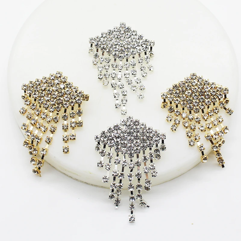 Size: 18*60MM Material: metal, rhinestone, acrylic Process: alloy, electroplating, complicated process, fine workmanship Quantity: You will get 5pcs product at the price Uses: It is DIY craft Wedding decorations Sewing Decorations Clothing accessories Hats clothing decoration pin brooch Festivals Handicrafts