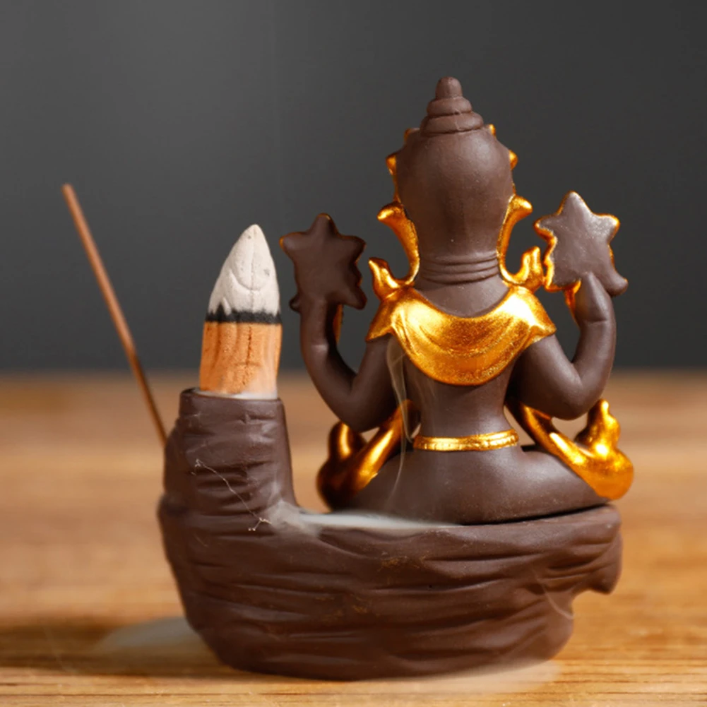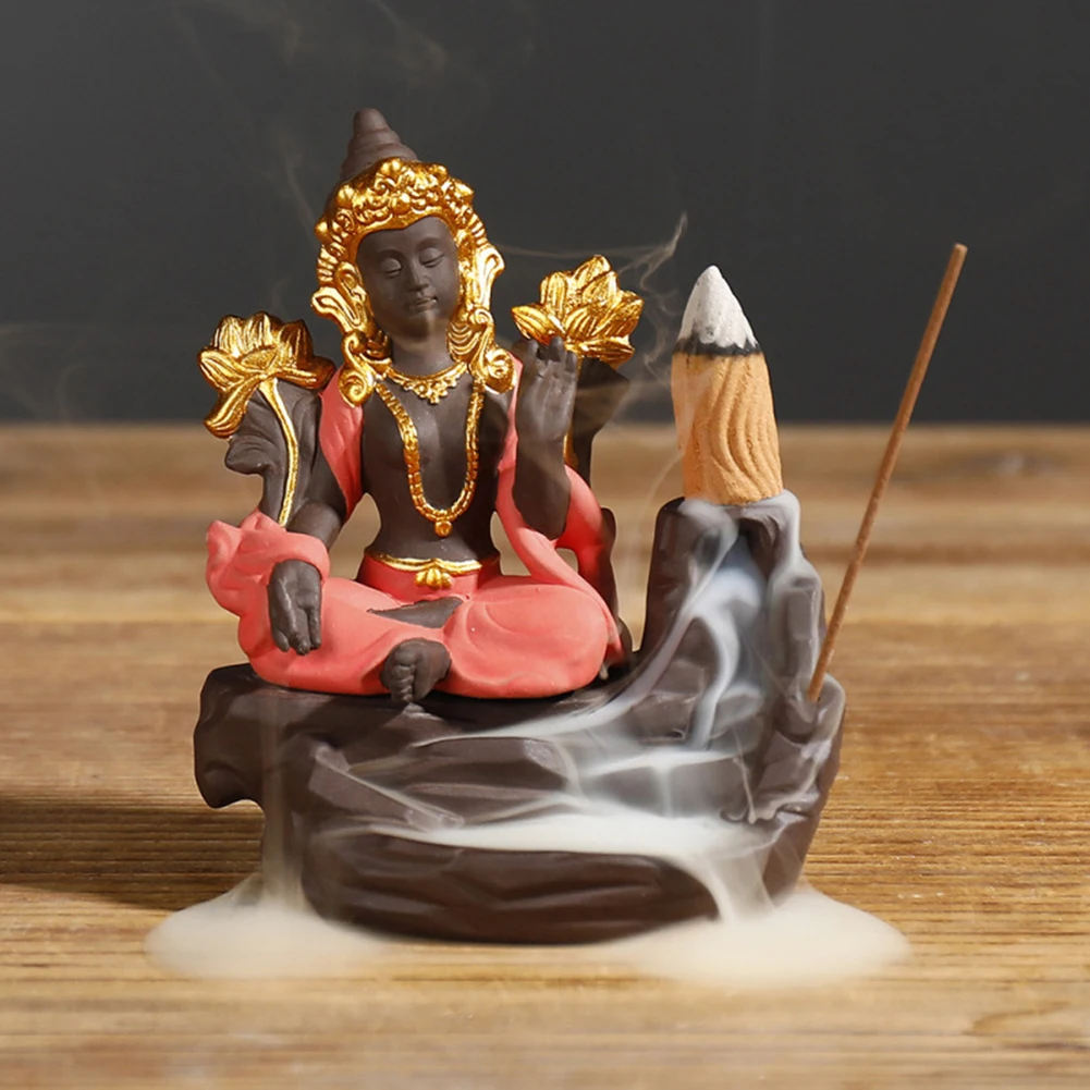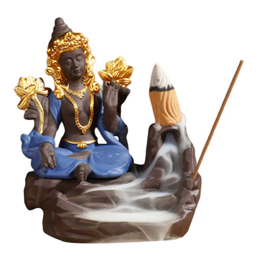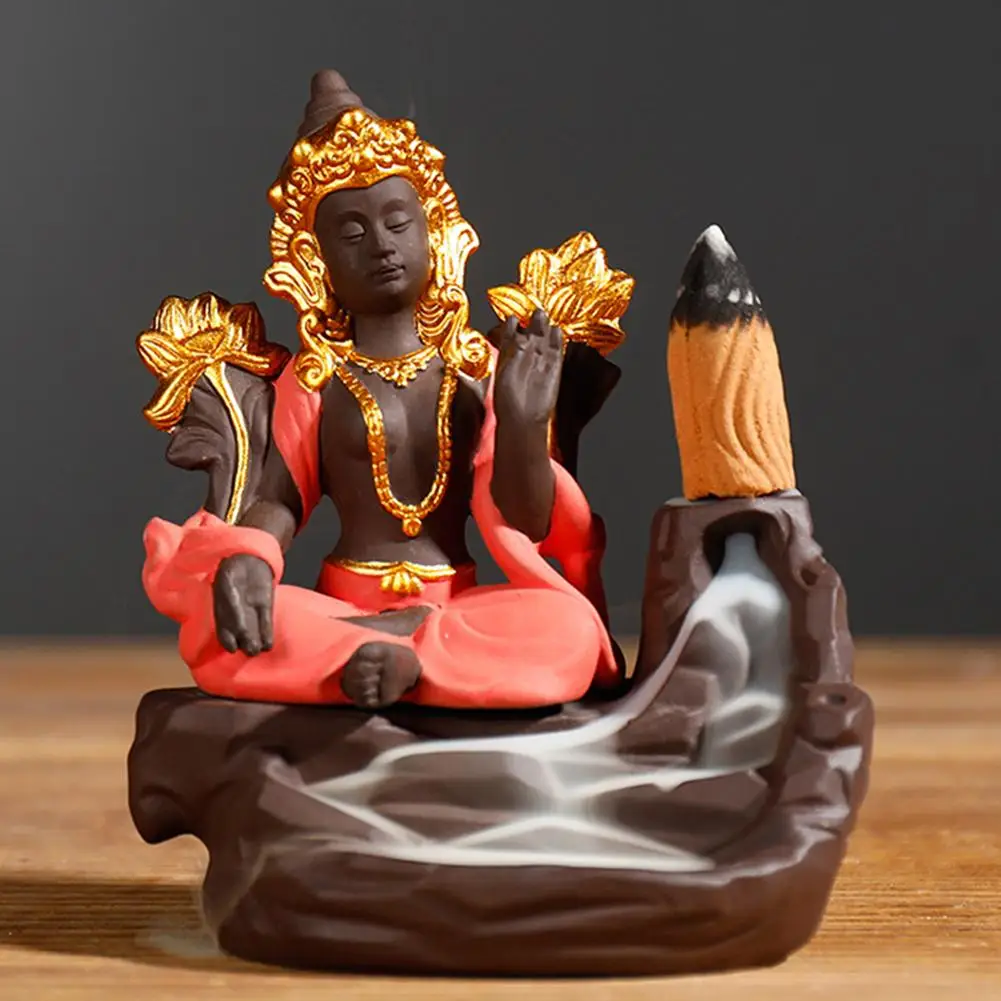 Керамическая курильница с обратным потоком в форме Будды, печь для обжига благовоний, конусный держатель диффузора, домашняя ароматерапия, буддизм дзен, благовония