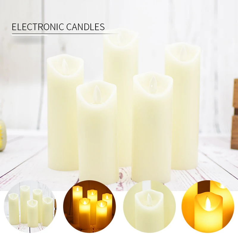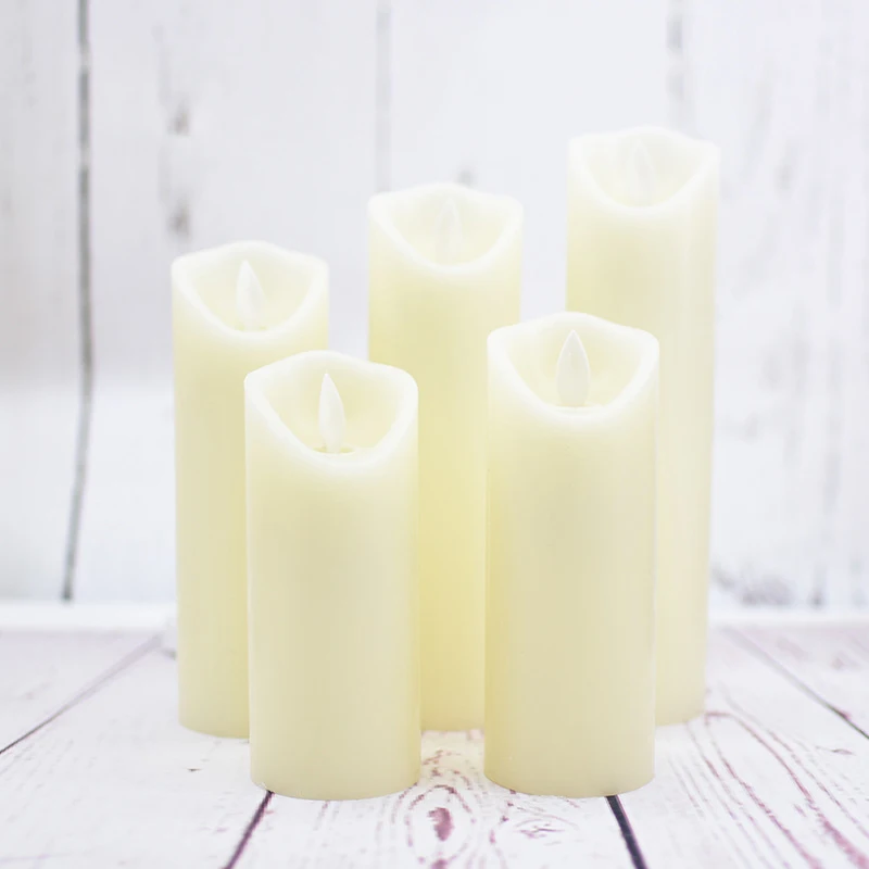 Беспламенные Свечи светодиодный свечи реалистичные перемещения набор из 5 цвета слоновой кости Батарея Свечи Воск столб с 10 пульта дистанционного управления Управление таймер-