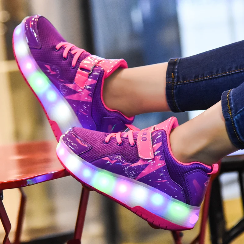 Светильник для девочек; модная обувь для мальчиков; Детские кроссовки; Размеры 29-40; дышащая Спортивная повседневная детская обувь на роликах