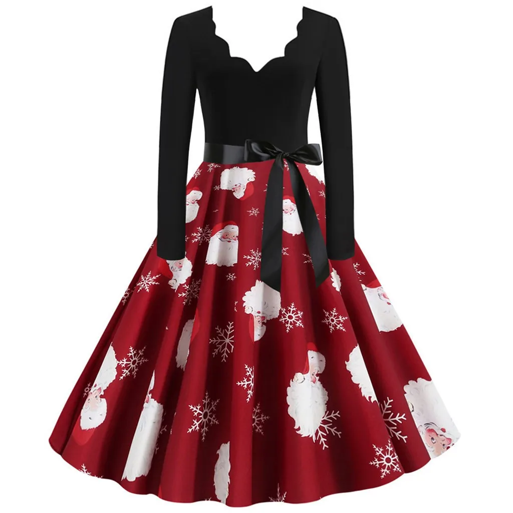 Женское винтажное рождественское вечернее платье с длинным рукавом 1950 s
