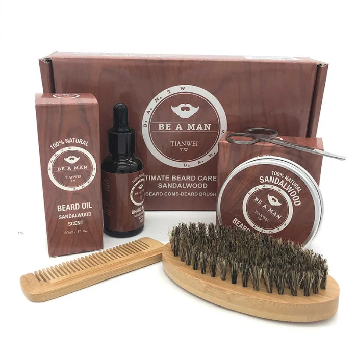 2019 мужской набор для ухода за бородой, щетка для бороды, расческа, усы, бальзам, масло, усы, ножницы, набор