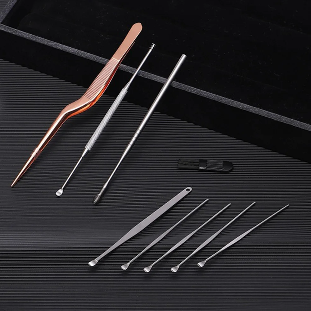 9 шт. профессиональная нержавеющая сталь спиральная Ушная палочка Ложка для удаления ушного воска с коробкой