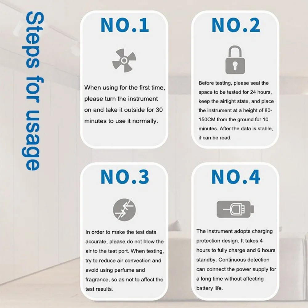 TVOC диапазон тестирования: 0,000 ~ 2,000 мг/м TVOC 3; (D9-B,D9-D,D9-H)