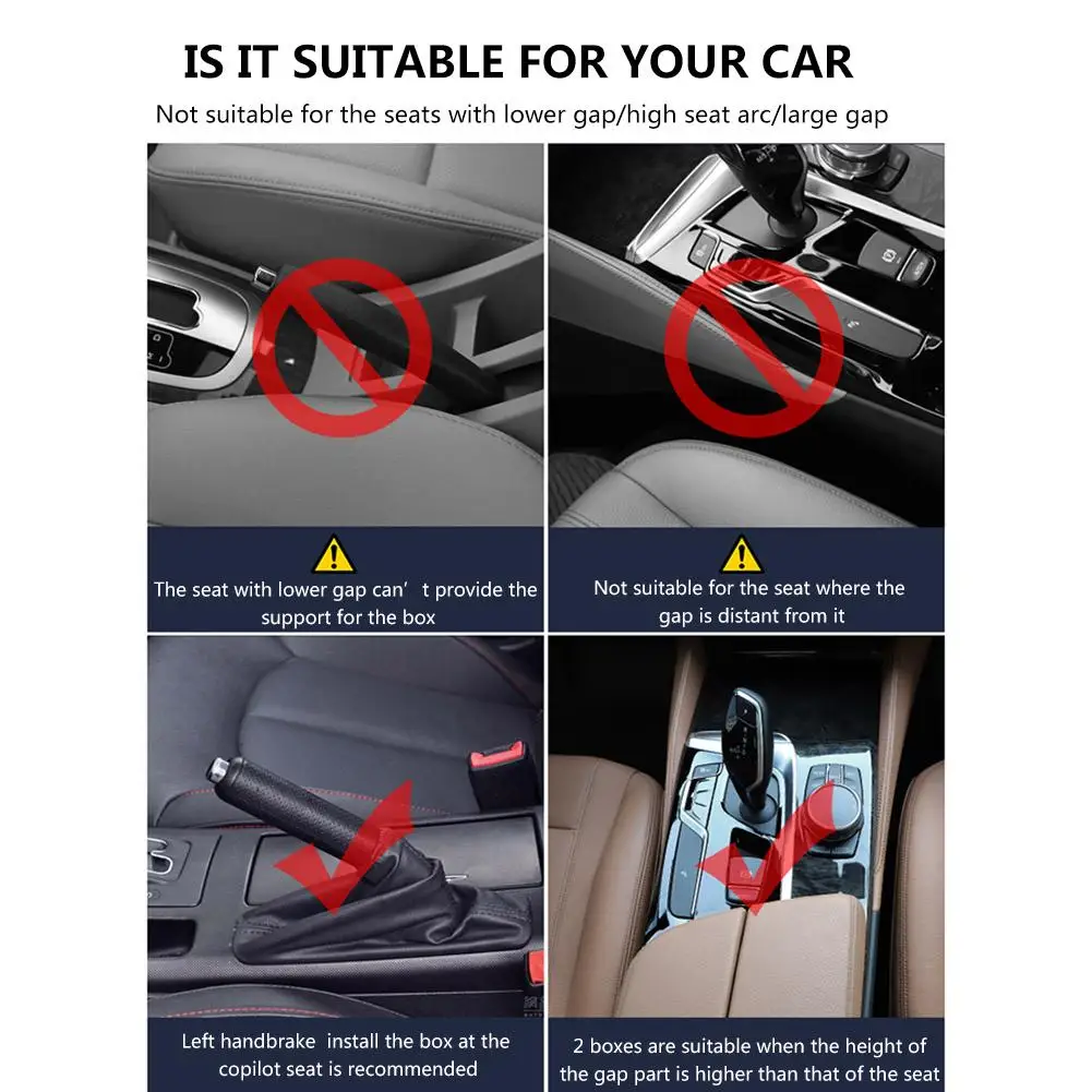 Особенности: 1. Автомобильный ящик для хранения имеет АБС-пластик, нескользящую износостойкость и прочную стабильность. 2. Ящик может быть помещен в зазор сиденья, чтобы увеличить пространство для хранения внутренней части автомобиля. 3. Коробка имеет универсальные отсеки, которые содержат положение отверстия провода и удобный дизайн отверстия для зарядки. 4. Коробка имеет сказочную установку, которая может быть установлена легко и быстро, коробка не отваливается после ее установки. 5. коробка отличается удобным дизайном, который находится в строгом соответствии с дизайном безопасности внутреннего пространства, который не будет застревать с пряжкой безопасности, что также не повлияет на вождение, которые могут свободно перемещаться и обеспечивают достаточно места для хранения.