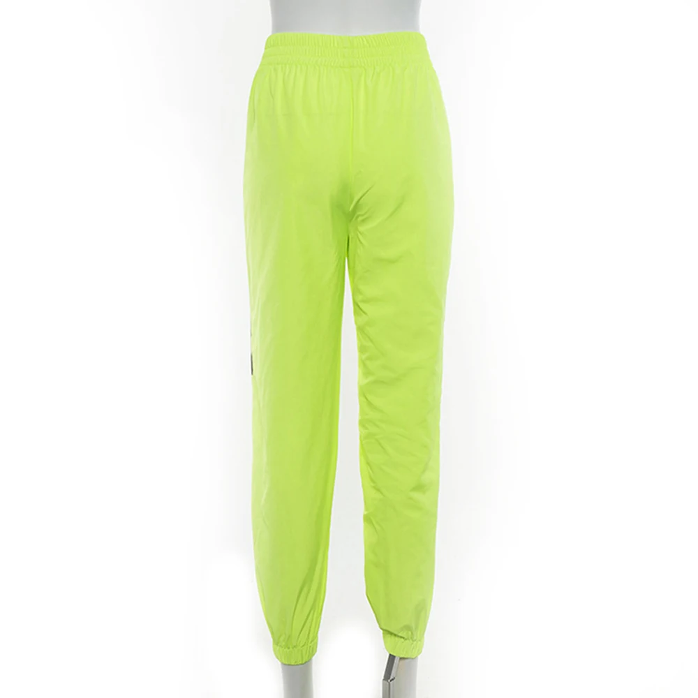 Неоновые зеленые брюки карго женские свободные повседневные Прямые брюки весна осень мода Высокая талия активная уличная одежда широкие брюки