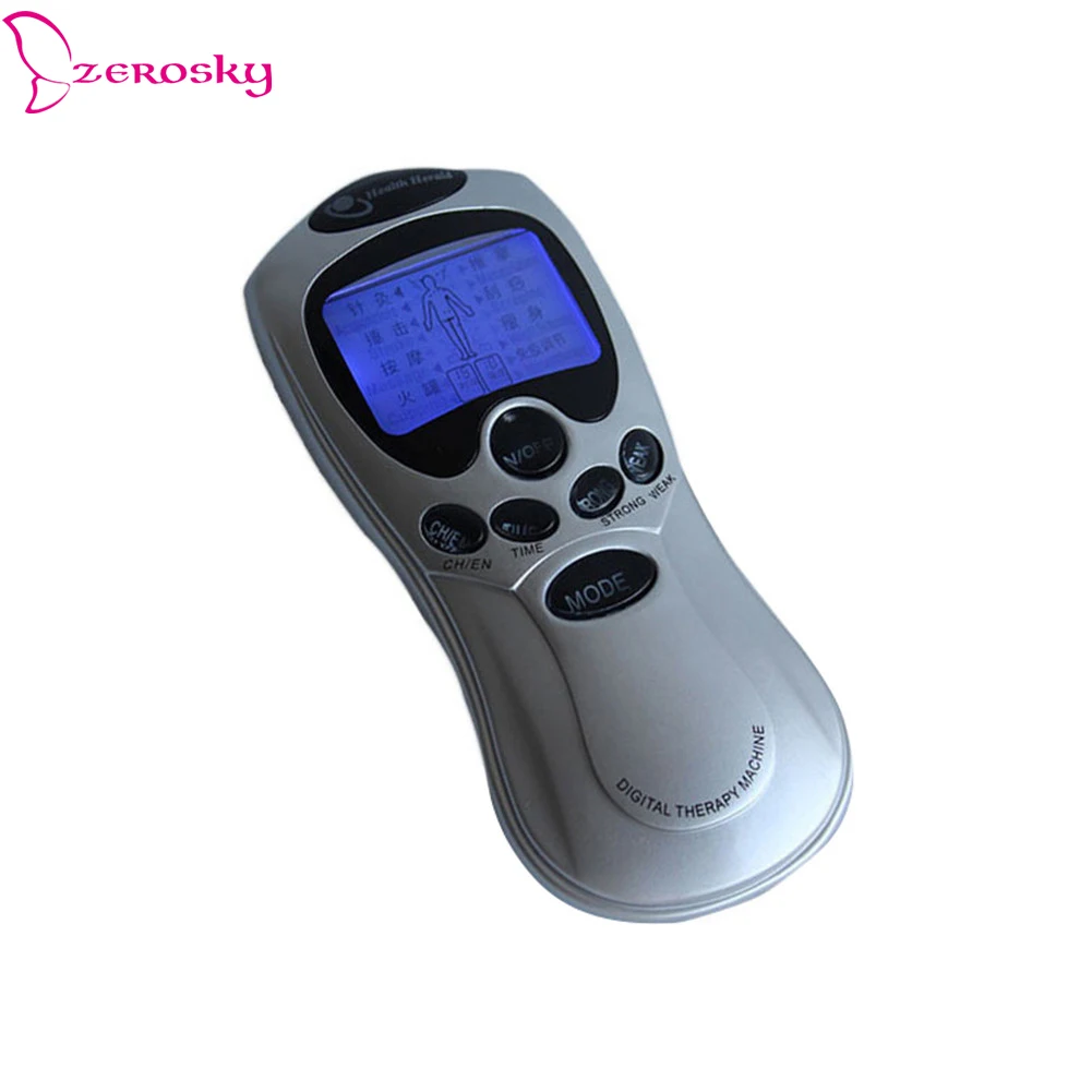 Описание (включает все параметры продукта) Color цвет изделия: серебристый (синий экран) Material состав материала: пластик Composition состав продукта: отдельный хост (без аккумулятора) Один выходной порт, специальное оборудование для электрического шокового импульсного массажа! Английская версия, может переключаться между китайским и английским Батарея: 3 * AAA батареи Размеры: 15,3*6,6*3 см