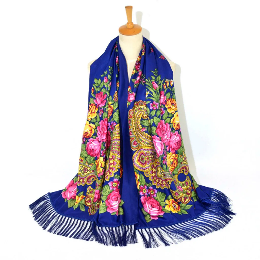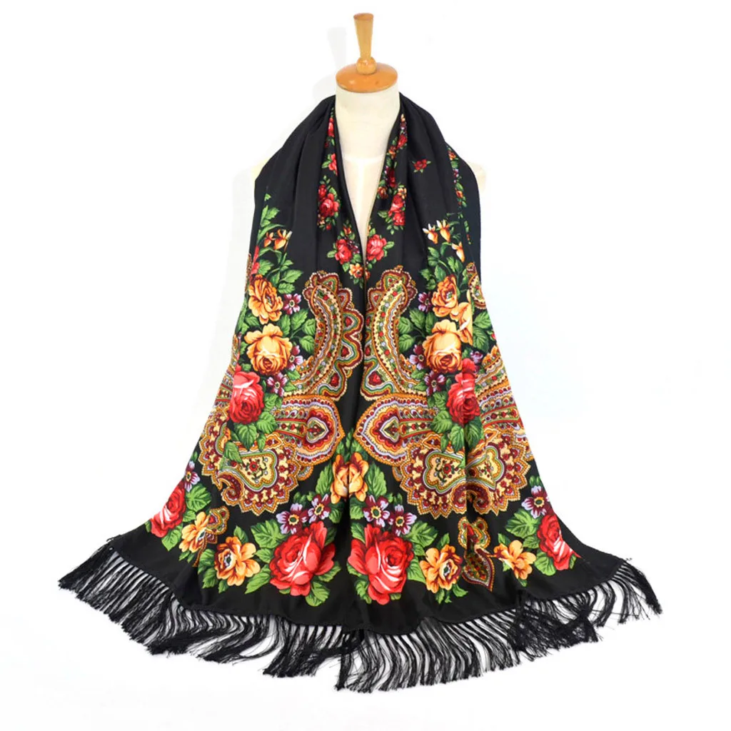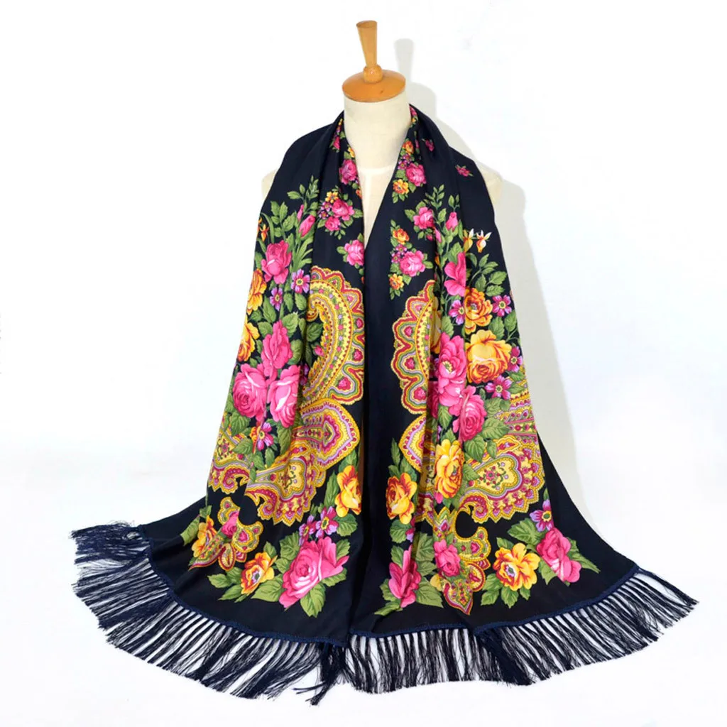 Женский Галстук с принтом в народном стиле, квадратный шарф с кисточкой, шаль для путешествий