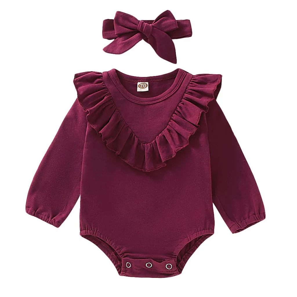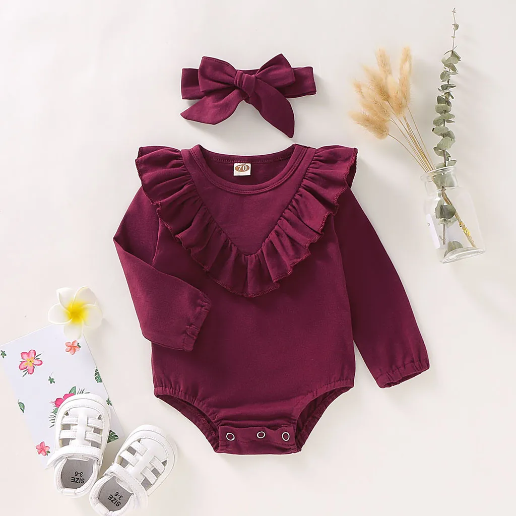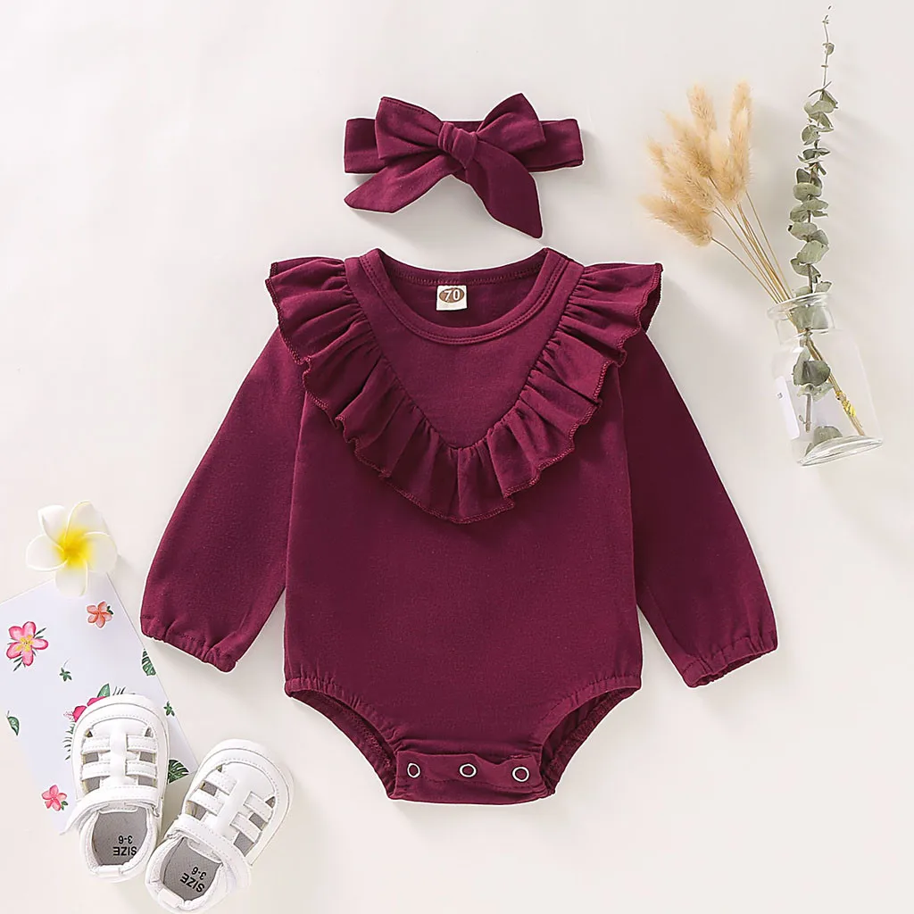 Комбинезон с цветочным рисунком для новорожденных девочек и мальчиков, боди, повязка на голову с оборками, комплект одежды