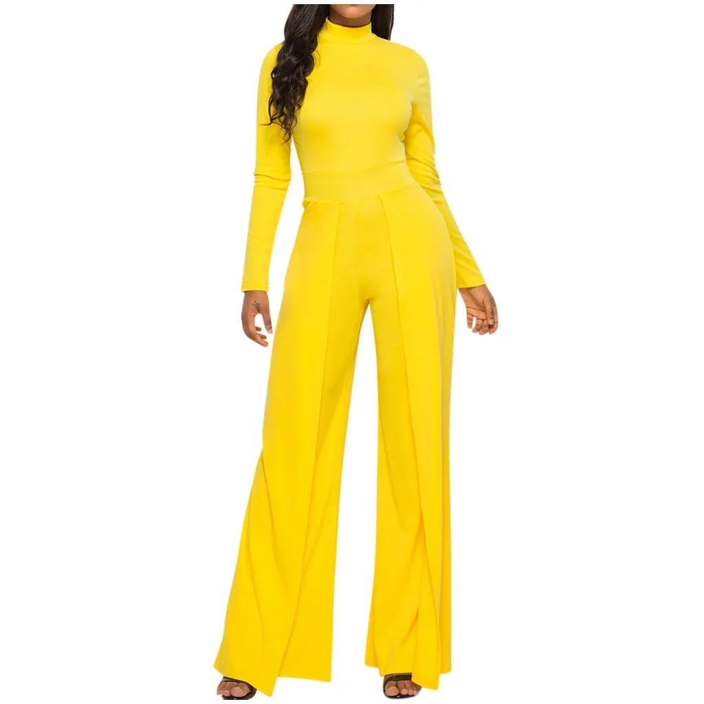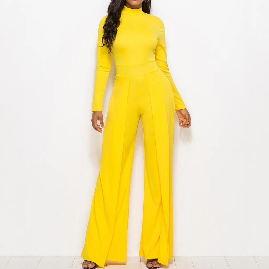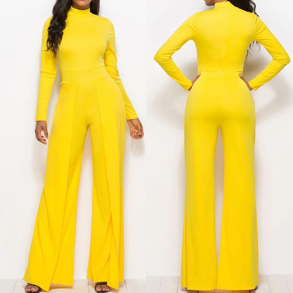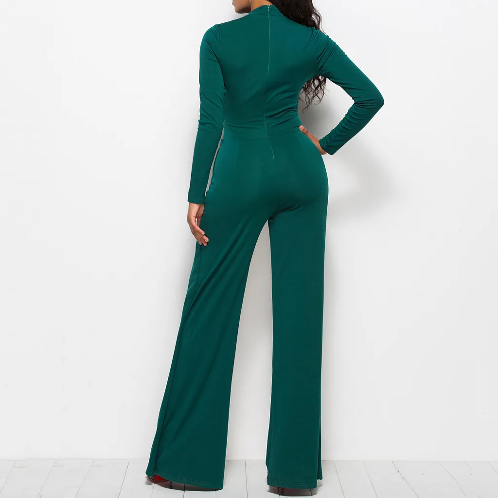 Мода женщин Твердые Простые o-образным вырезом с длинным рукавом работы офиса широкие ноги Jumosuit
