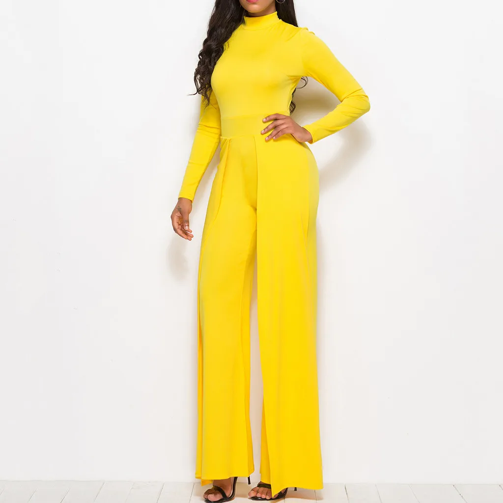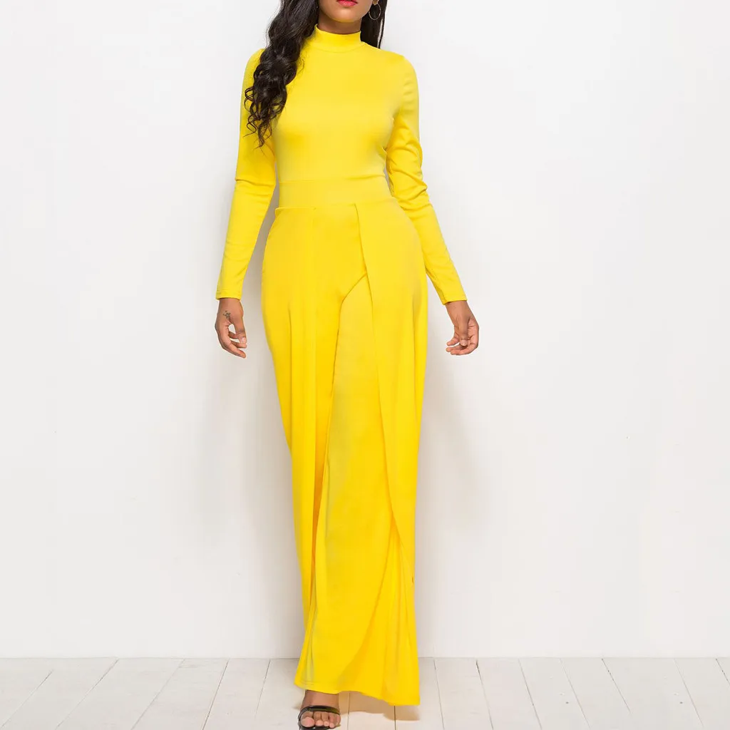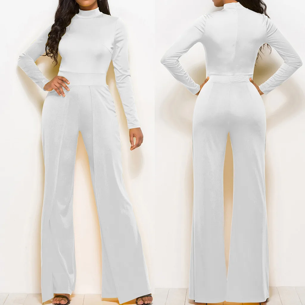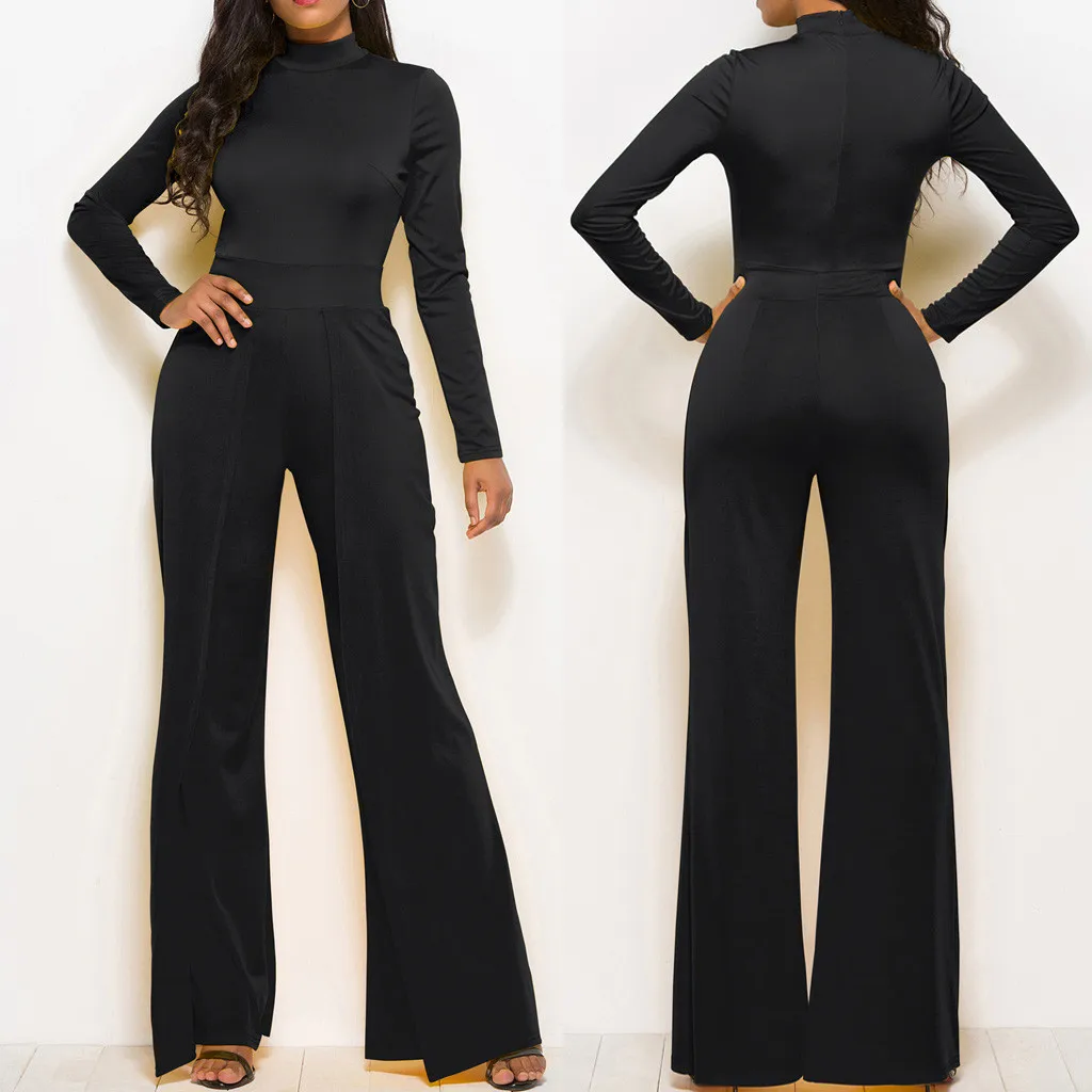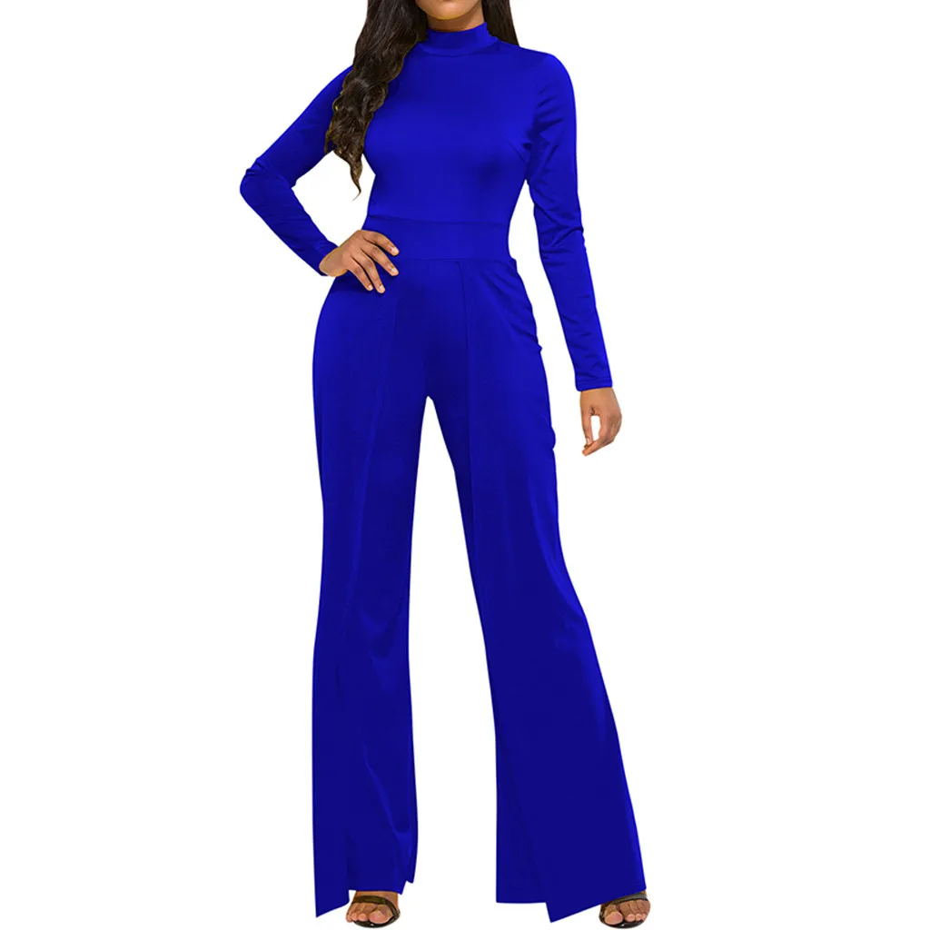 Мода женщин Твердые Простые o-образным вырезом с длинным рукавом работы офиса широкие ноги Jumosuit