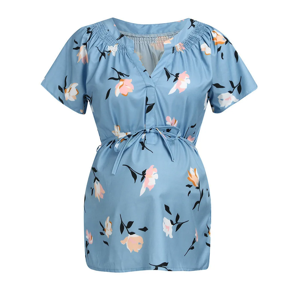 Женская футболка с v-образным вырезом и цветочным принтом для беременных; Повседневная одежда; Блузка