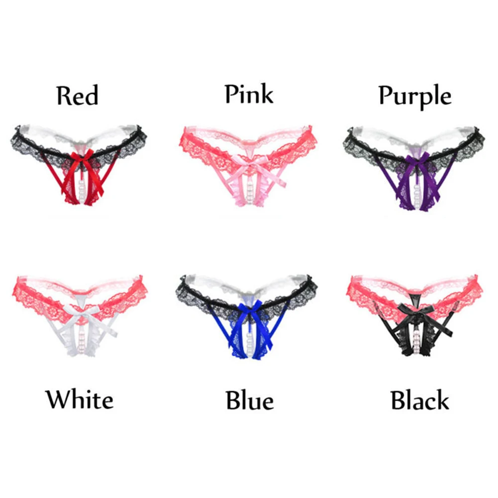 Сексуальные женские трусики-стринги с кружевным бантом и искусственным жемчугом